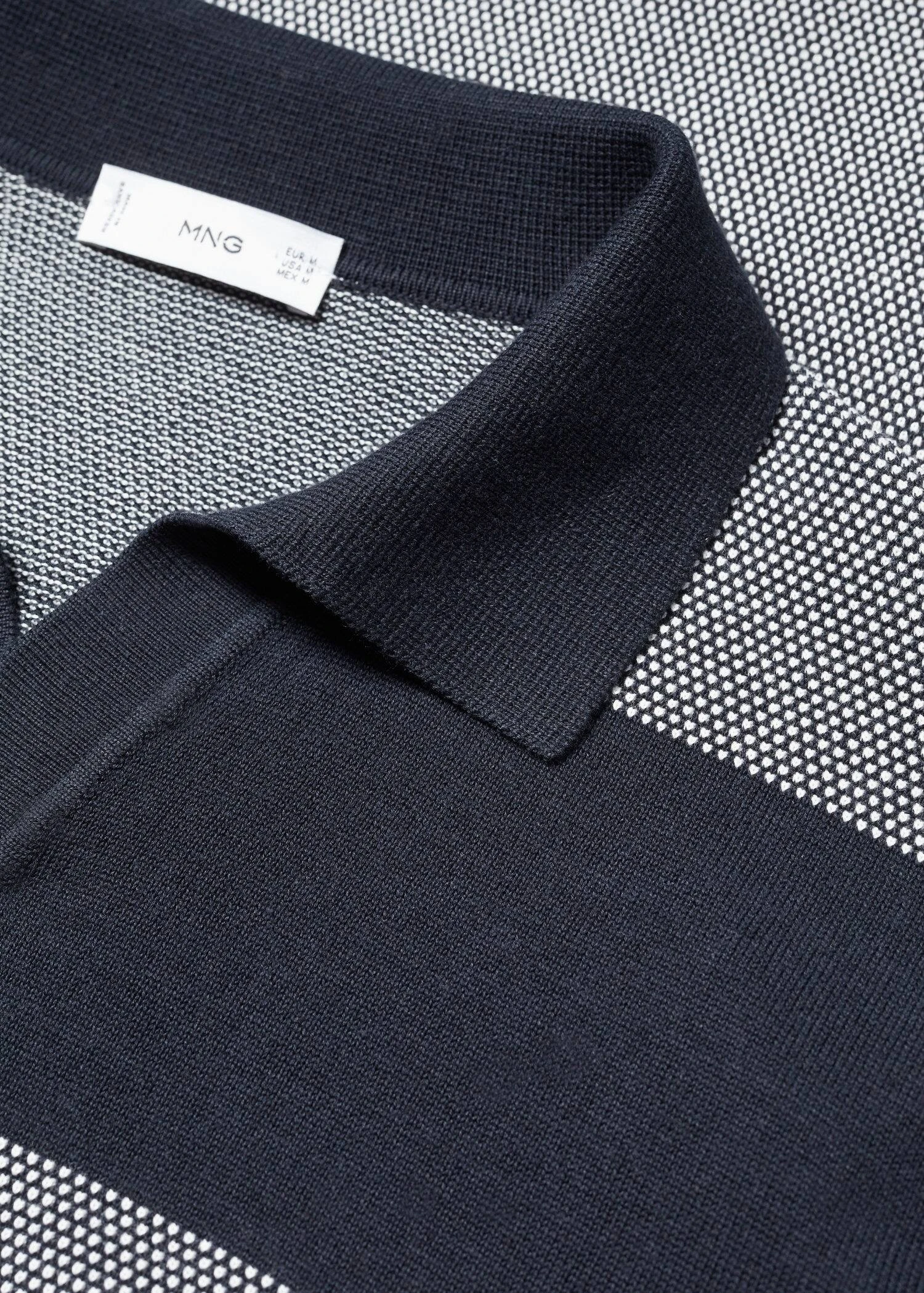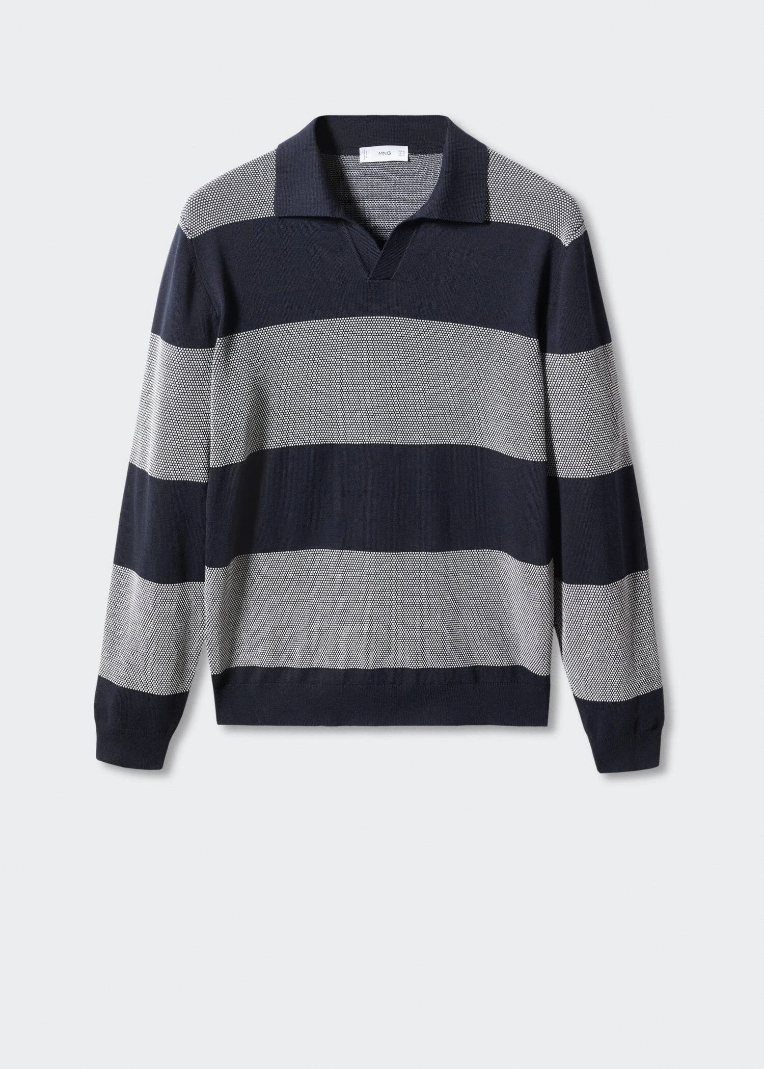 tissu en coton, tissu en maille fine, regular-fit, imprime a rayures horizontales, col polo en v sans fermeture, manches longues, bords coteles au niveau du col, des manches et sur le bas, le mannequin mesure 190 cm et porte une taille mComposition: 85% coton,15% polyamide