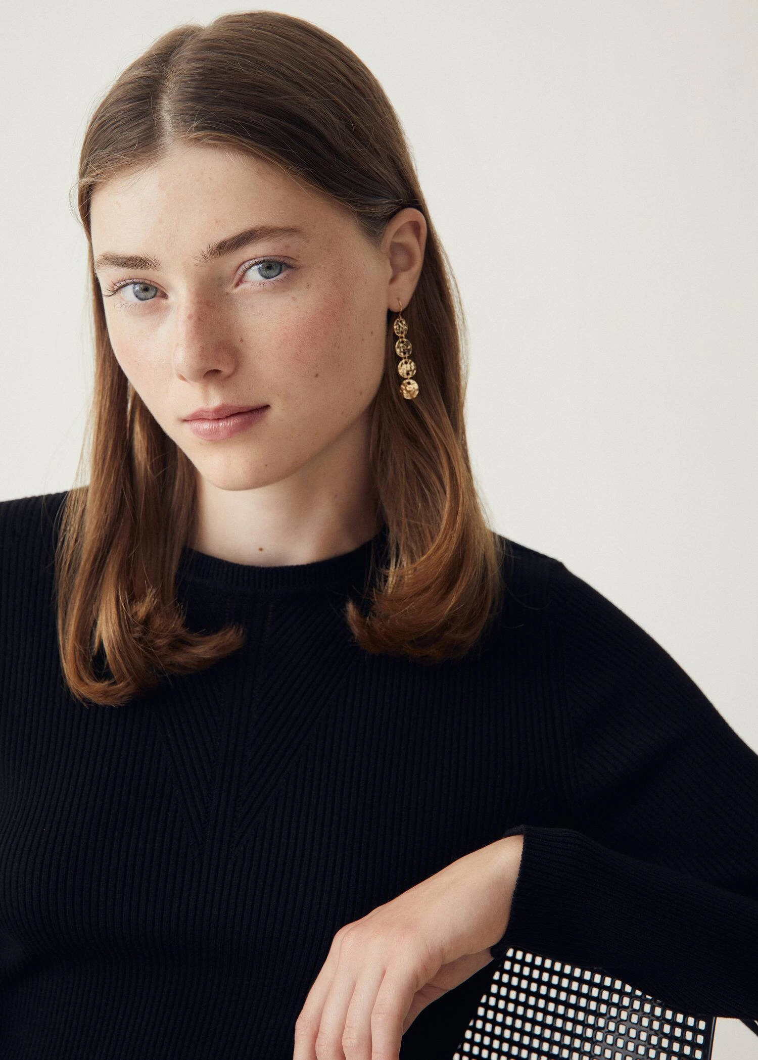 tissu en grosse maille, coupe droite, col rond, manches longues, le mannequin mesure 172 cm et porte une taille mComposition: 50% viscose,28% polyester,22% polyamide