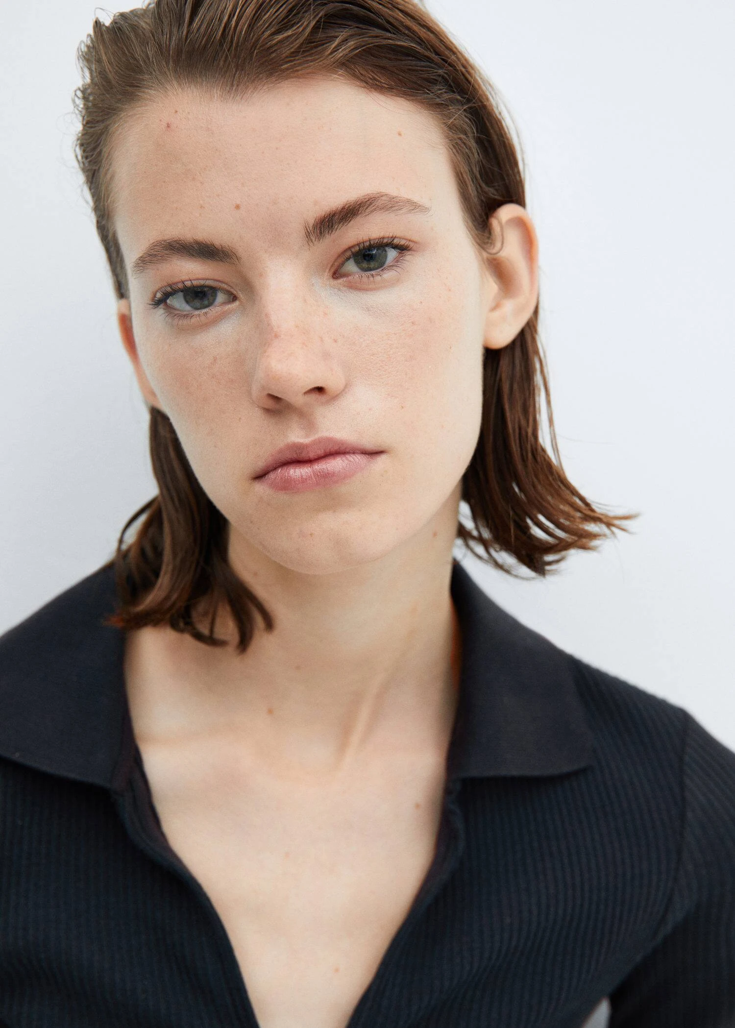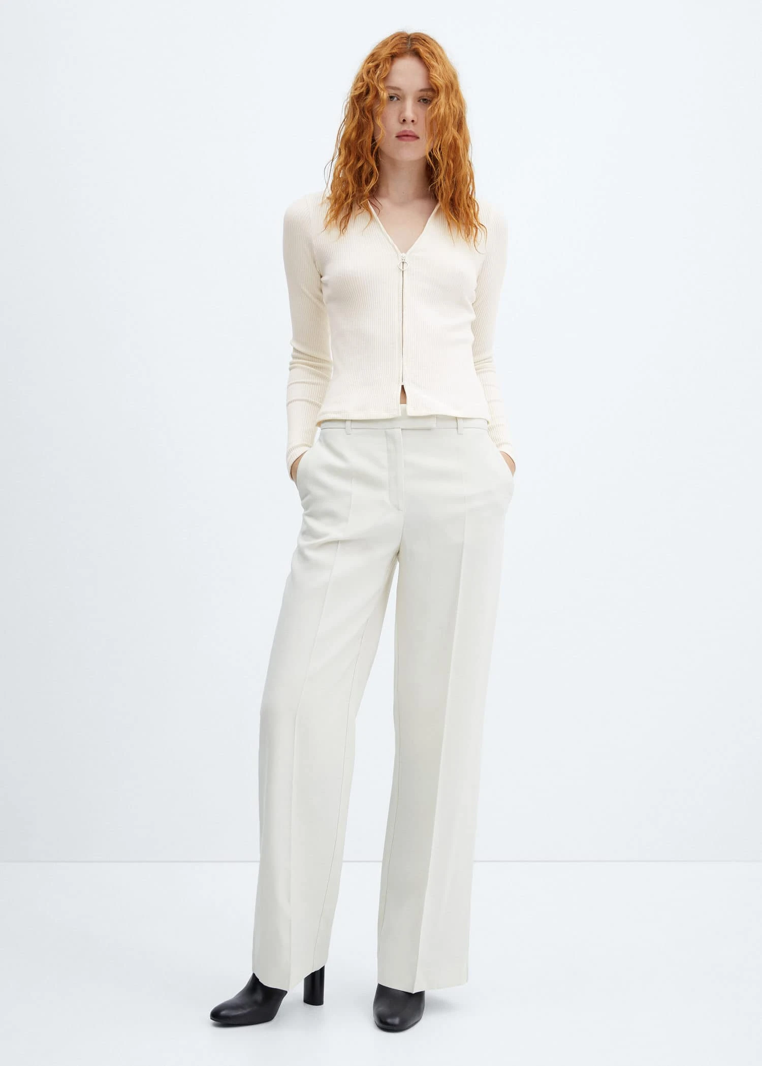 tissu cotele, droit, col polo, manches longues, fermeture eclair a l’avantComposition: 52% polyester,44% coton,4% elasthanne. Col: 100% coton. Lisiere: 97% viscose,3% elasthanne