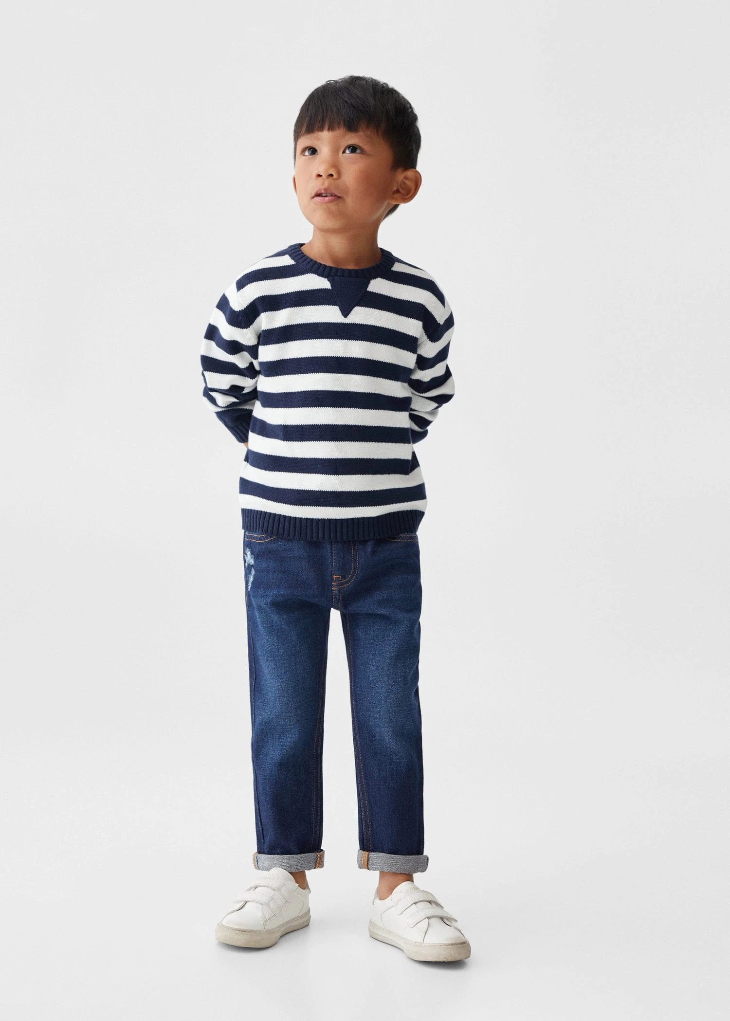 100 % coton, tissu en grosse maille, coupe droite, imprime rayures, fermeture au niveau du col, col rond, manches longues, bouton de fermeture a l’arriereComposition: 100% coton