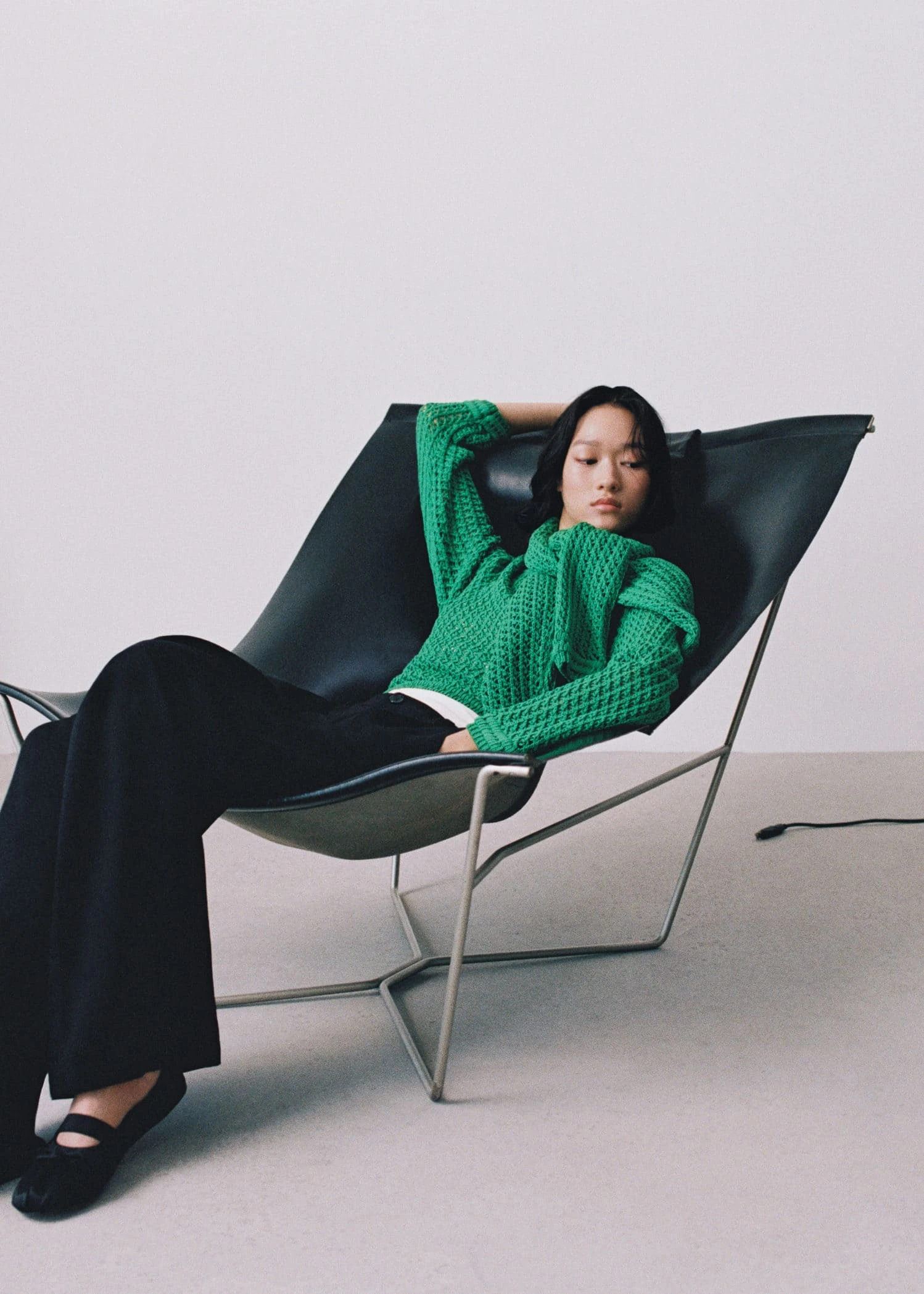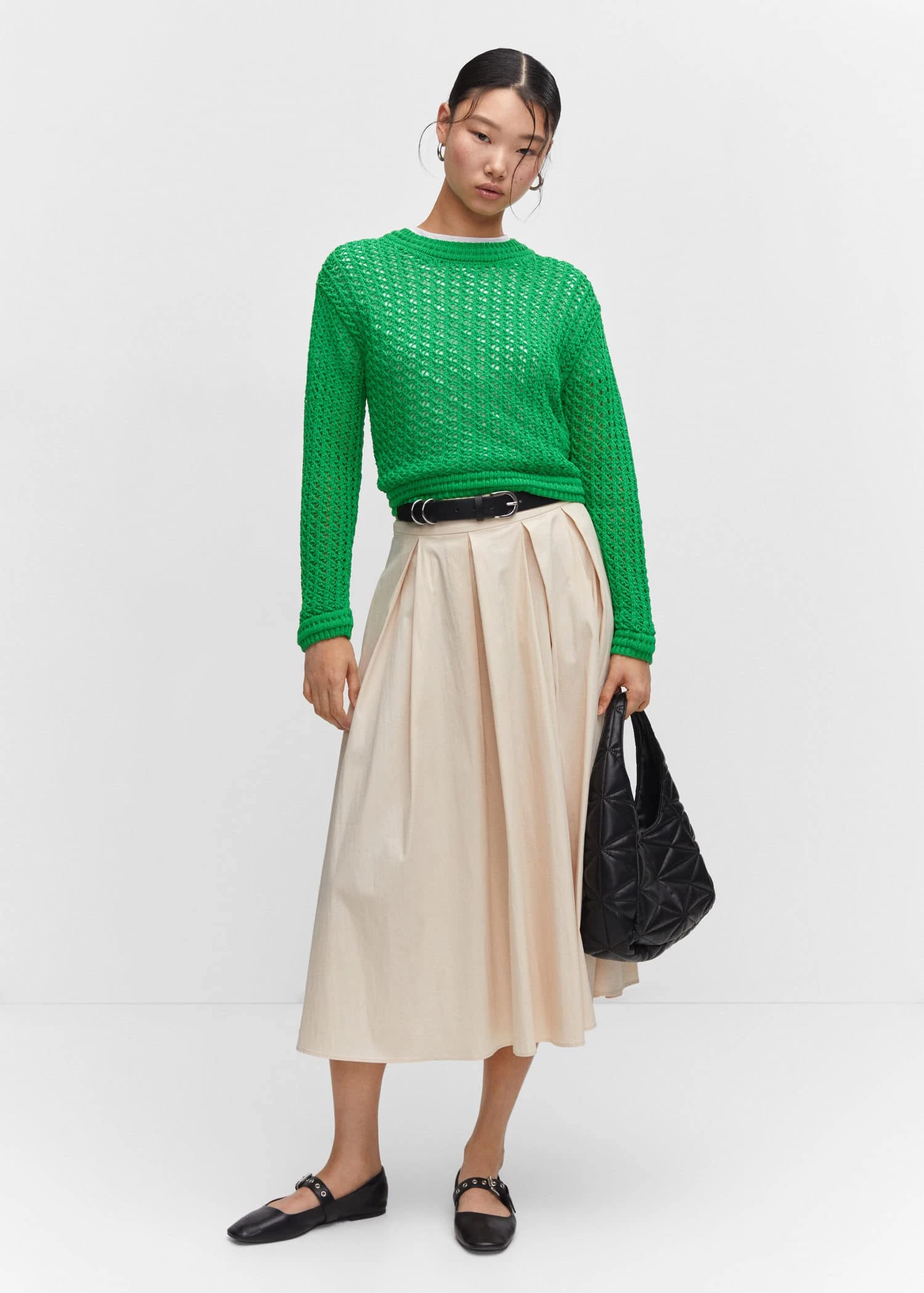 tissu en crochet, maille moyenne, coupe droite, coupe courte, col rond, manches longues, bords coteles contrastes au niveau du col, des manches et sur le basComposition: 100% acrylique