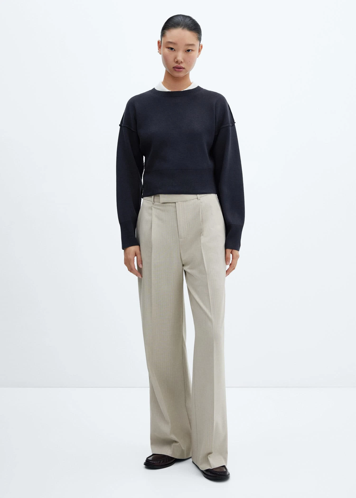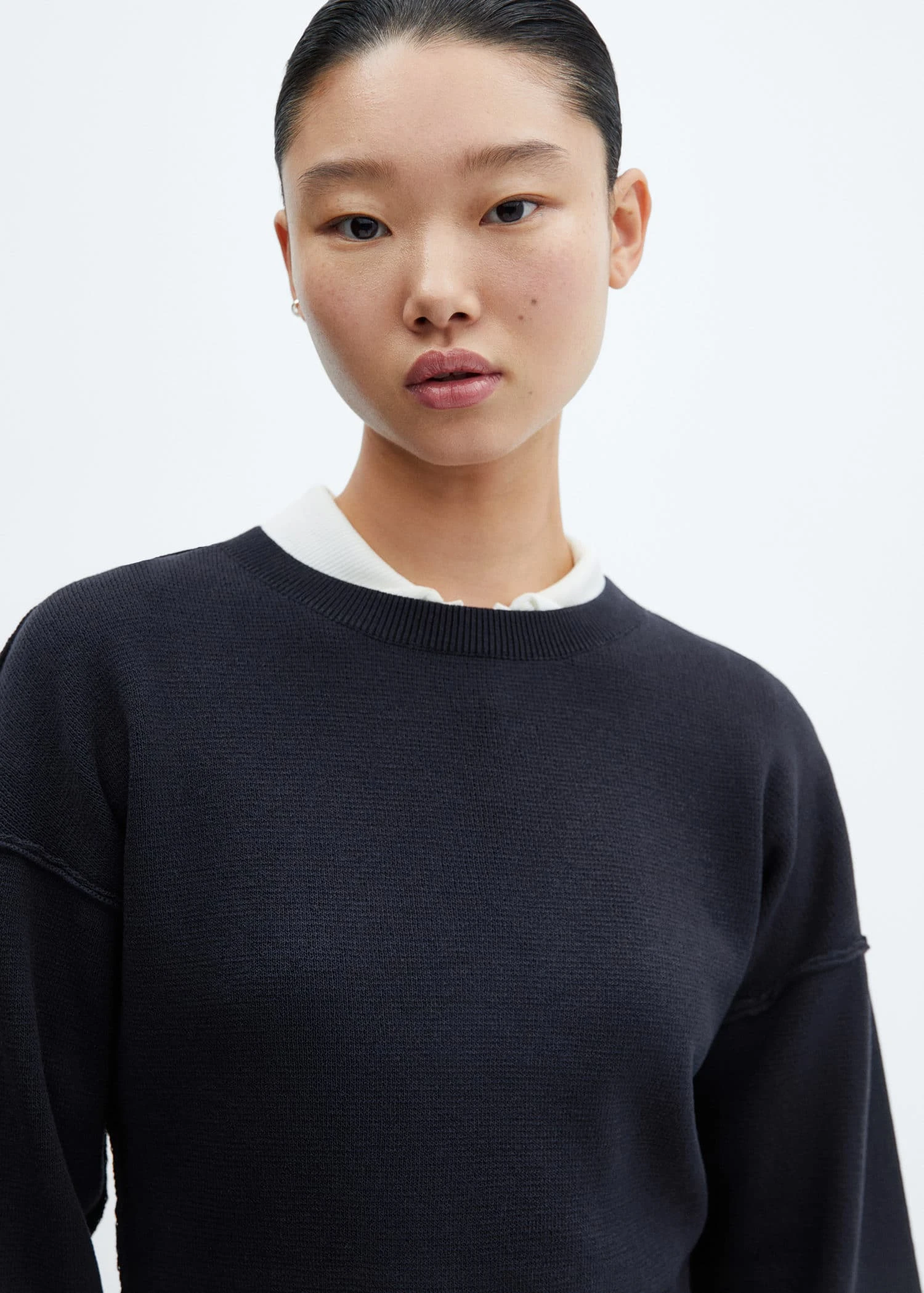 tissu en maille fine, coupe droite, col rond, manches longues avec poignets elastiques, sans fermeture, bas elastique, couture tombante sur l’epauleComposition: 89% acrylique,11% polyester
