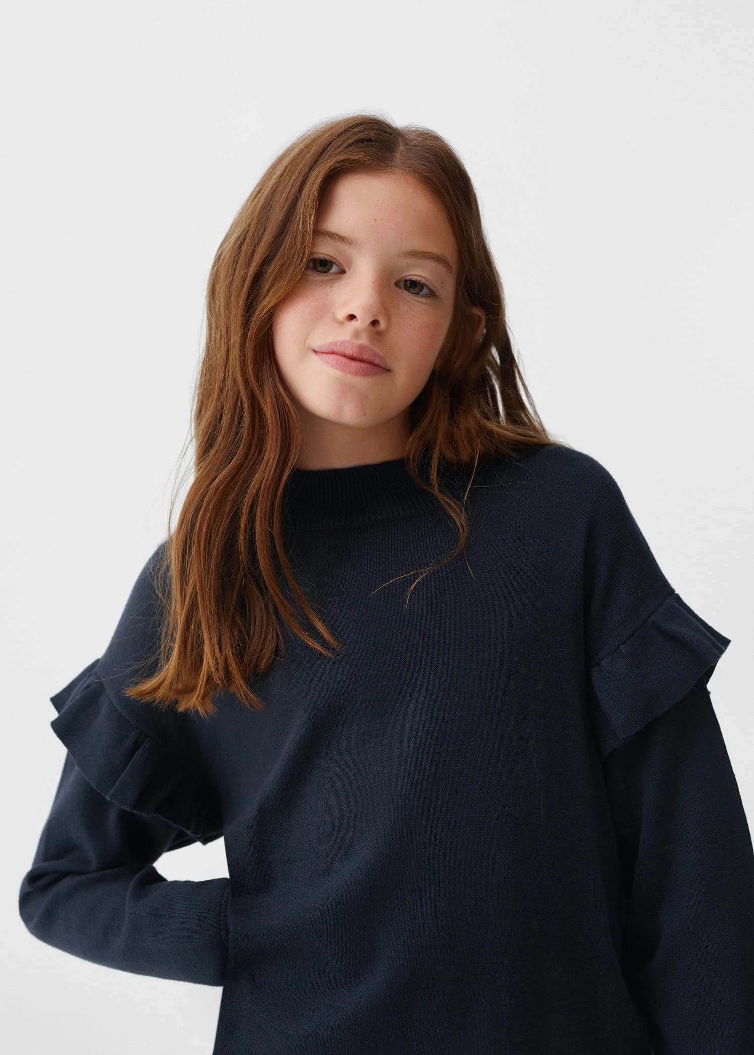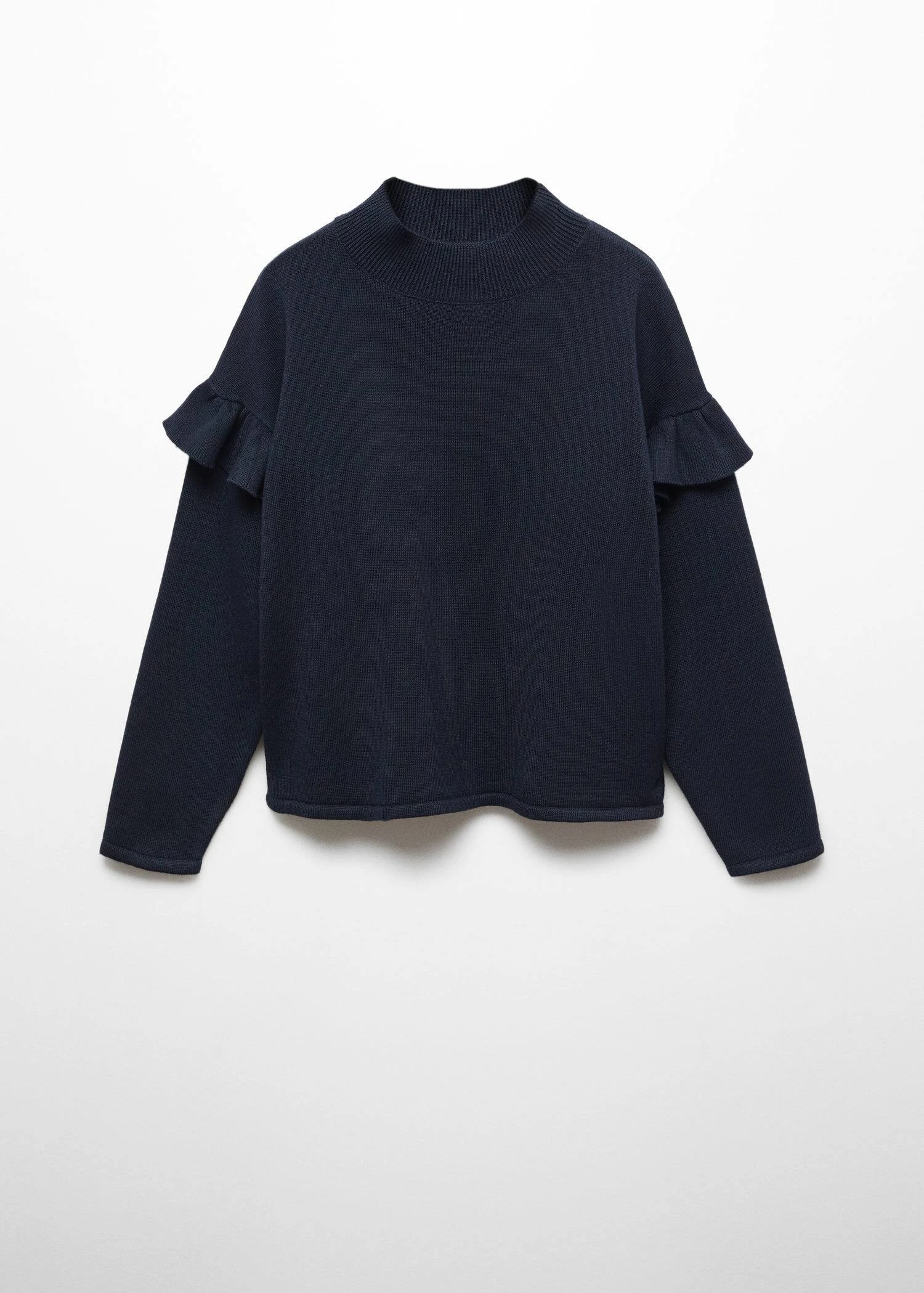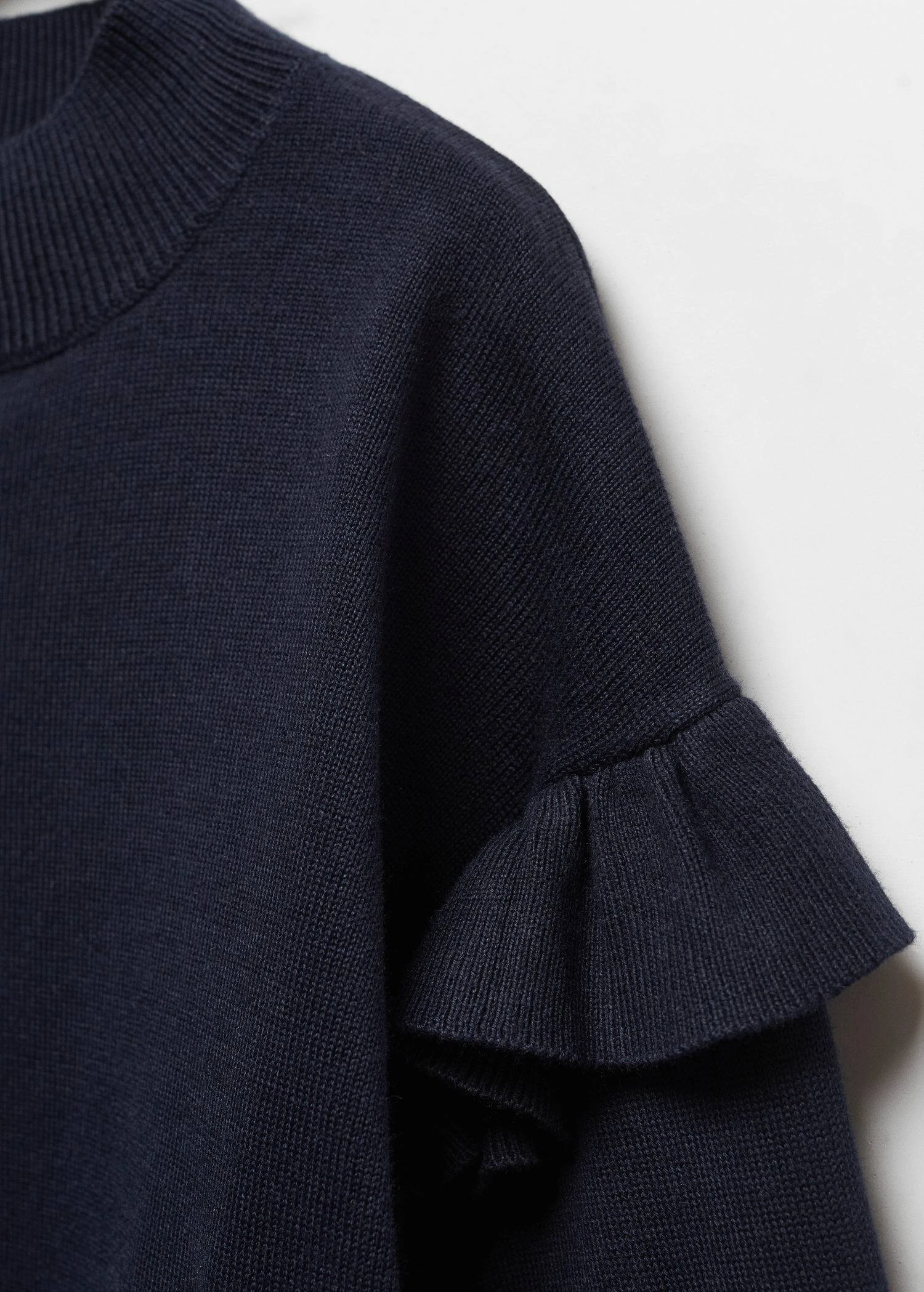 tissu en maille fine, coupe droite, col montant, manches longues, details volantesComposition: 60% coton,40% acrylique
