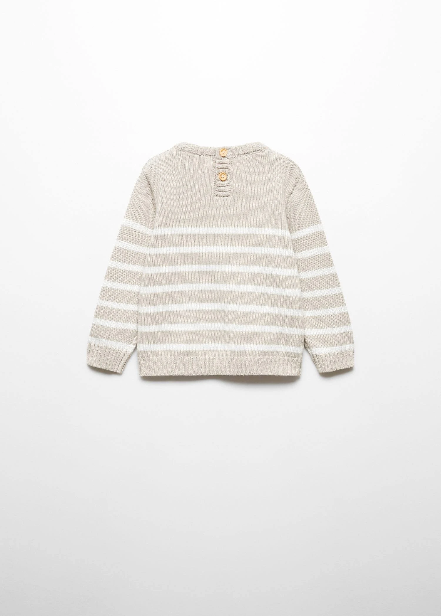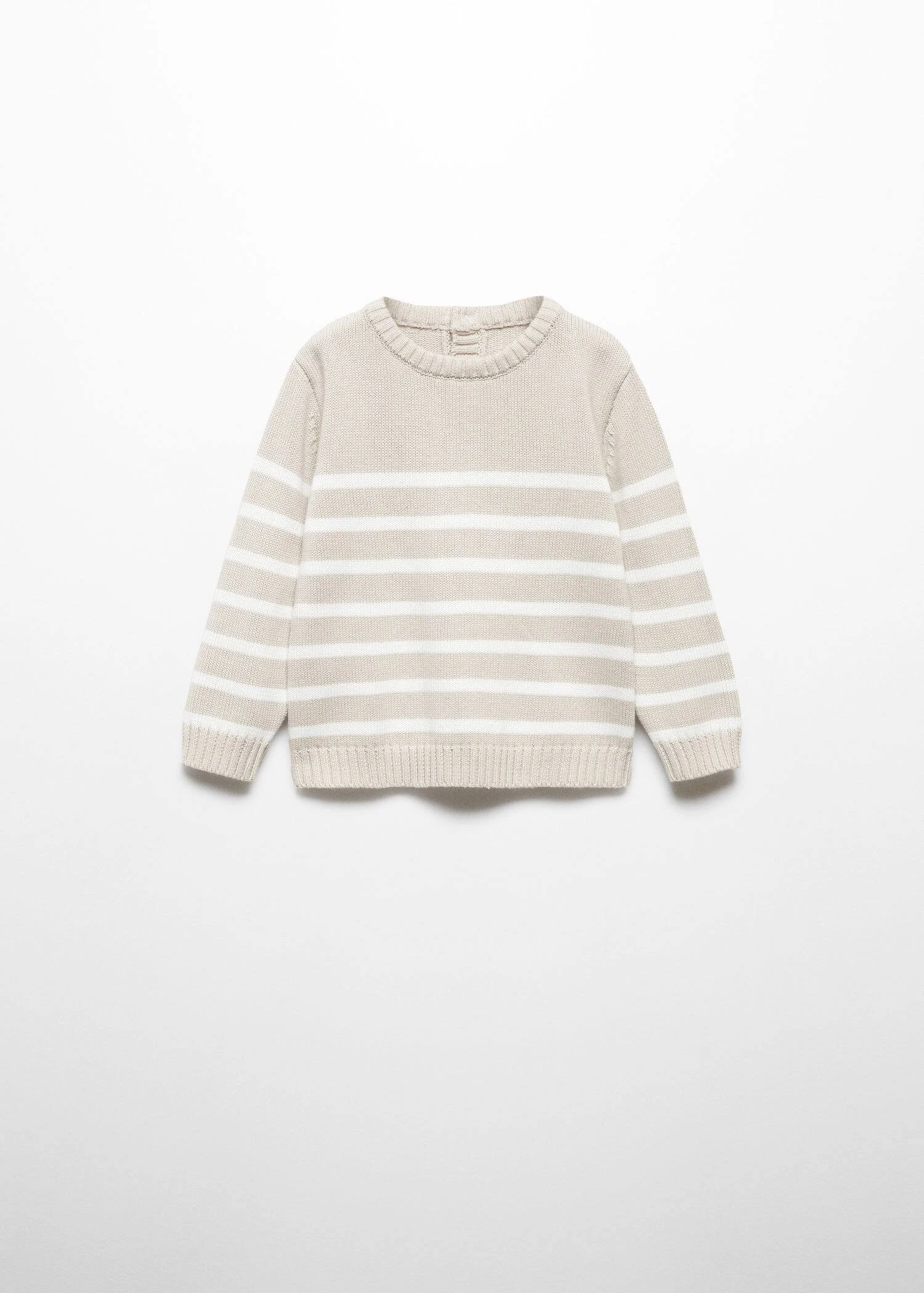 100 % coton, tissu en grosse maille, imprime rayures, coupe droite, col rond, manches longues, fermeture arriereComposition: 100% coton