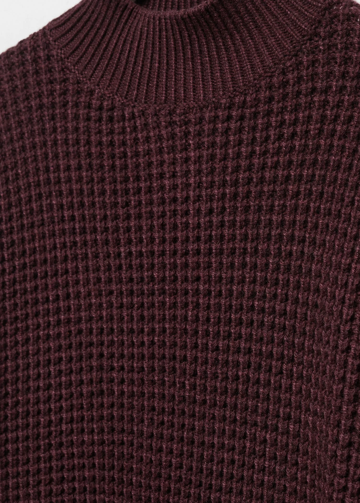 tissu melange laine et cachemire, tissu en grosse maille, regular-fit, col montant, manches longues avec poignets elastiques, bas droit, bords coteles au niveau du col, des manches et sur le bas, le mannequin mesure 190 cm et porte une taille mComposition: 55% polyamide,41% laine,4% cashmere
