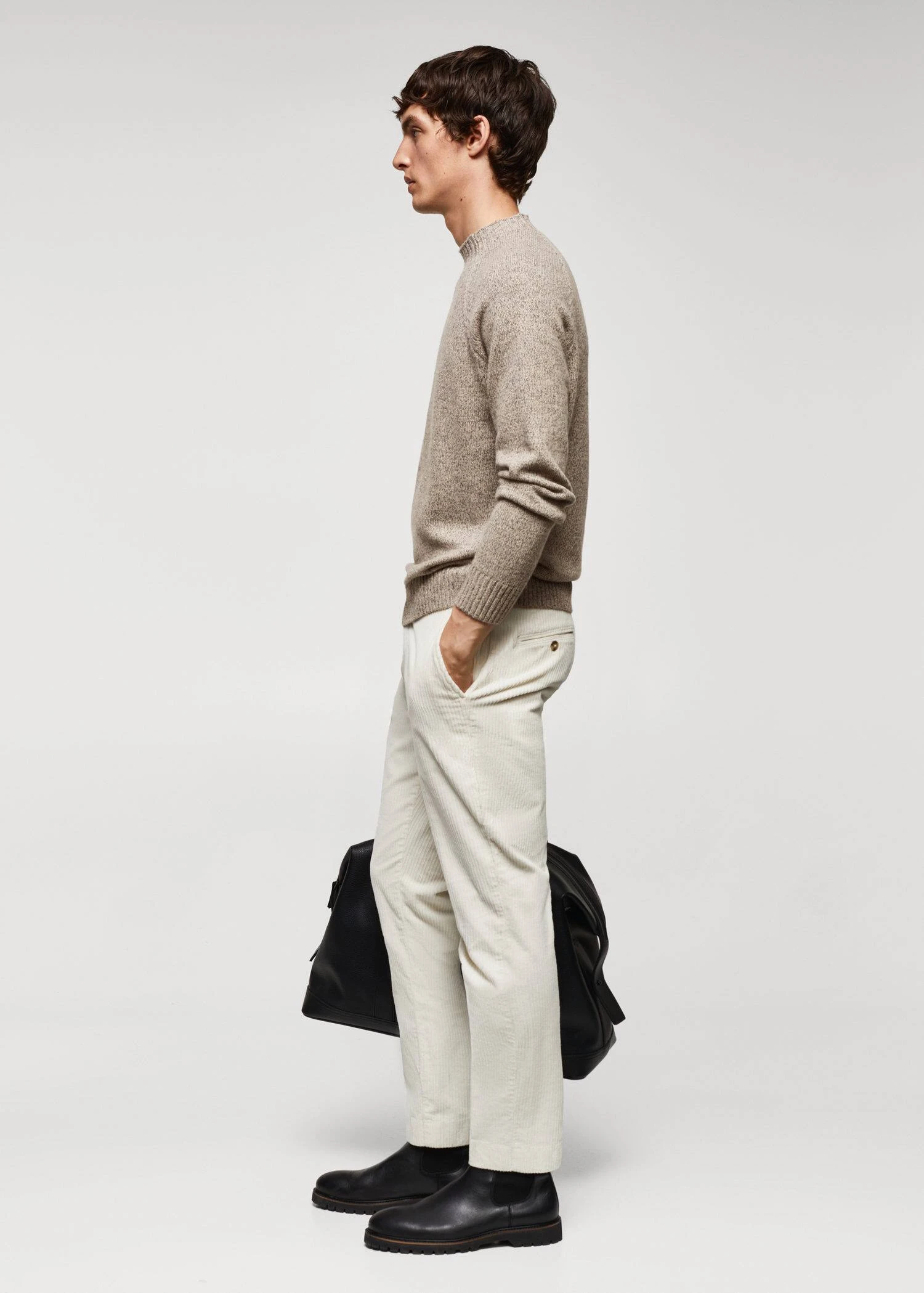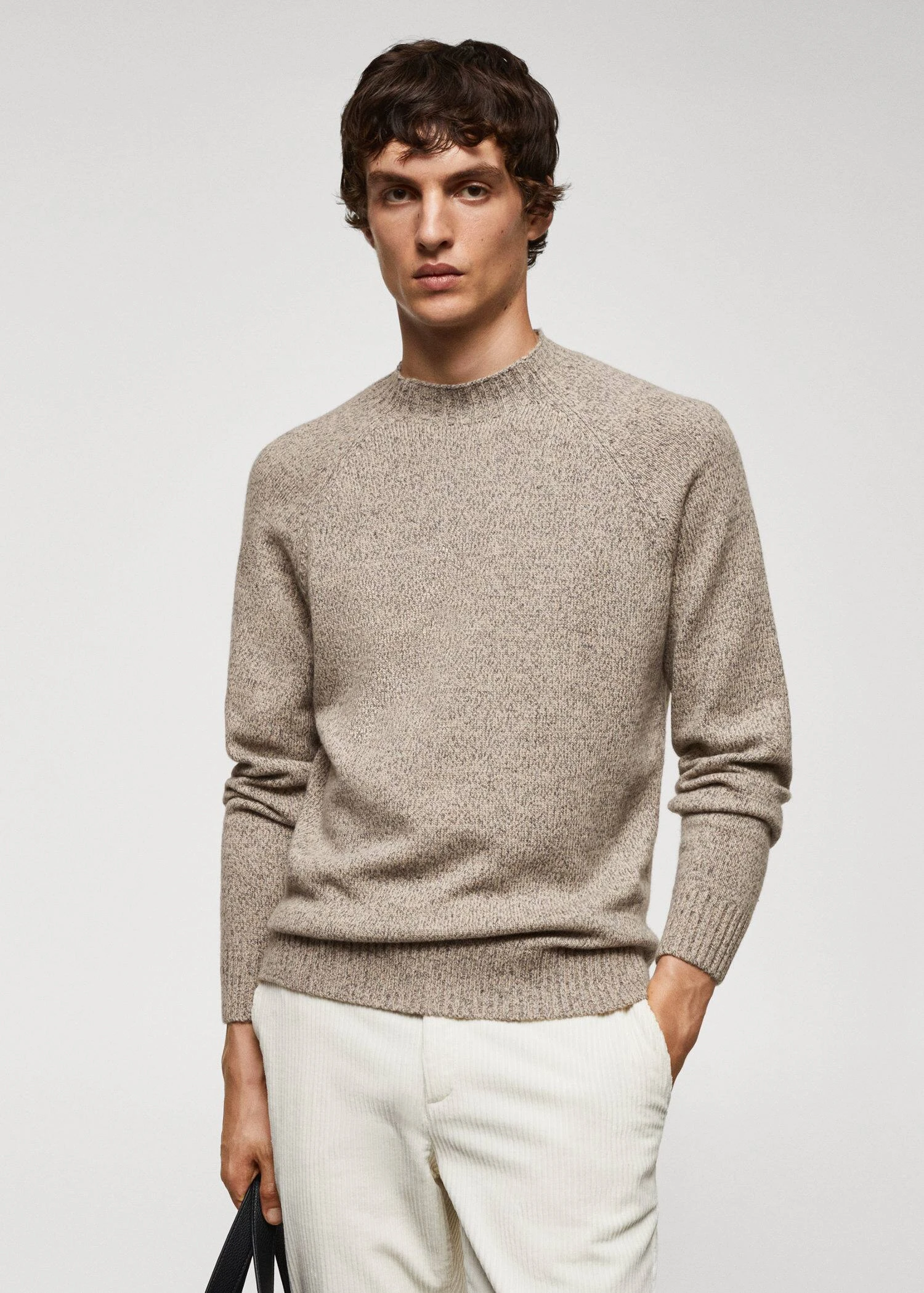 tissu de laine melange, tissu en grosse maille, slim-fit, col montant, manches longues, bas droit, bords coteles au niveau du col, des manches et sur le bas, le mannequin mesure 190 cm et porte une taille m.Composition: 58% polyamide,42% laine