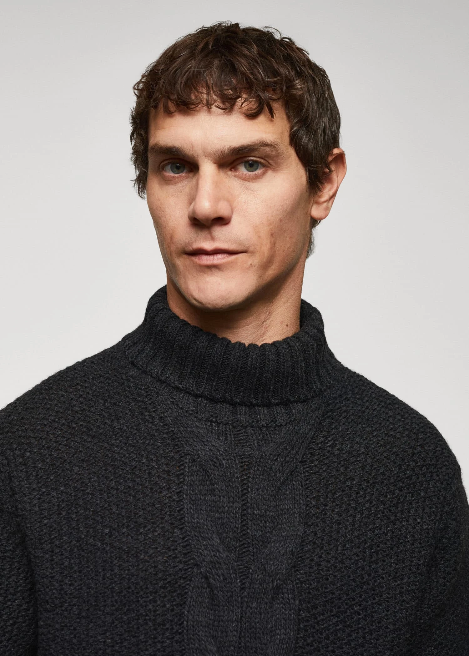 tissu de laine melange, tissu en grosse maille, regular-fit, detail tresse au centre, col montant, manches longues, bas droit, le mannequin mesure 190 cm et porte une taille mComposition: 80% acrylique,20% laine