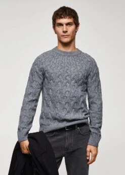 tissu de laine melange, regular-fit, tresse, col rond, manches longues, tissu en grosse maille, bords coteles au niveau du col, des manches et sur le bas, le mannequin mesure 190 cm et porte une taille mComposition: 80% acrylique,20% laine