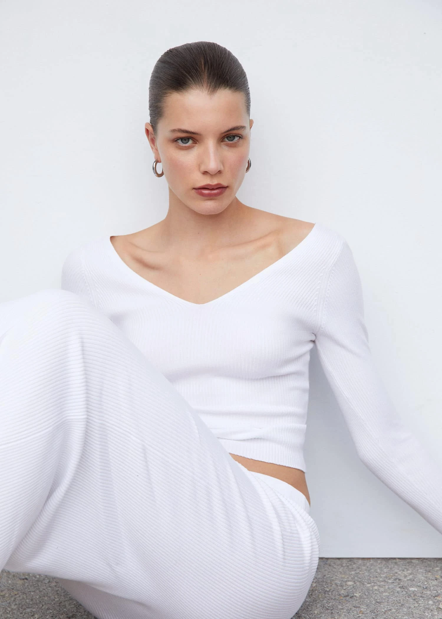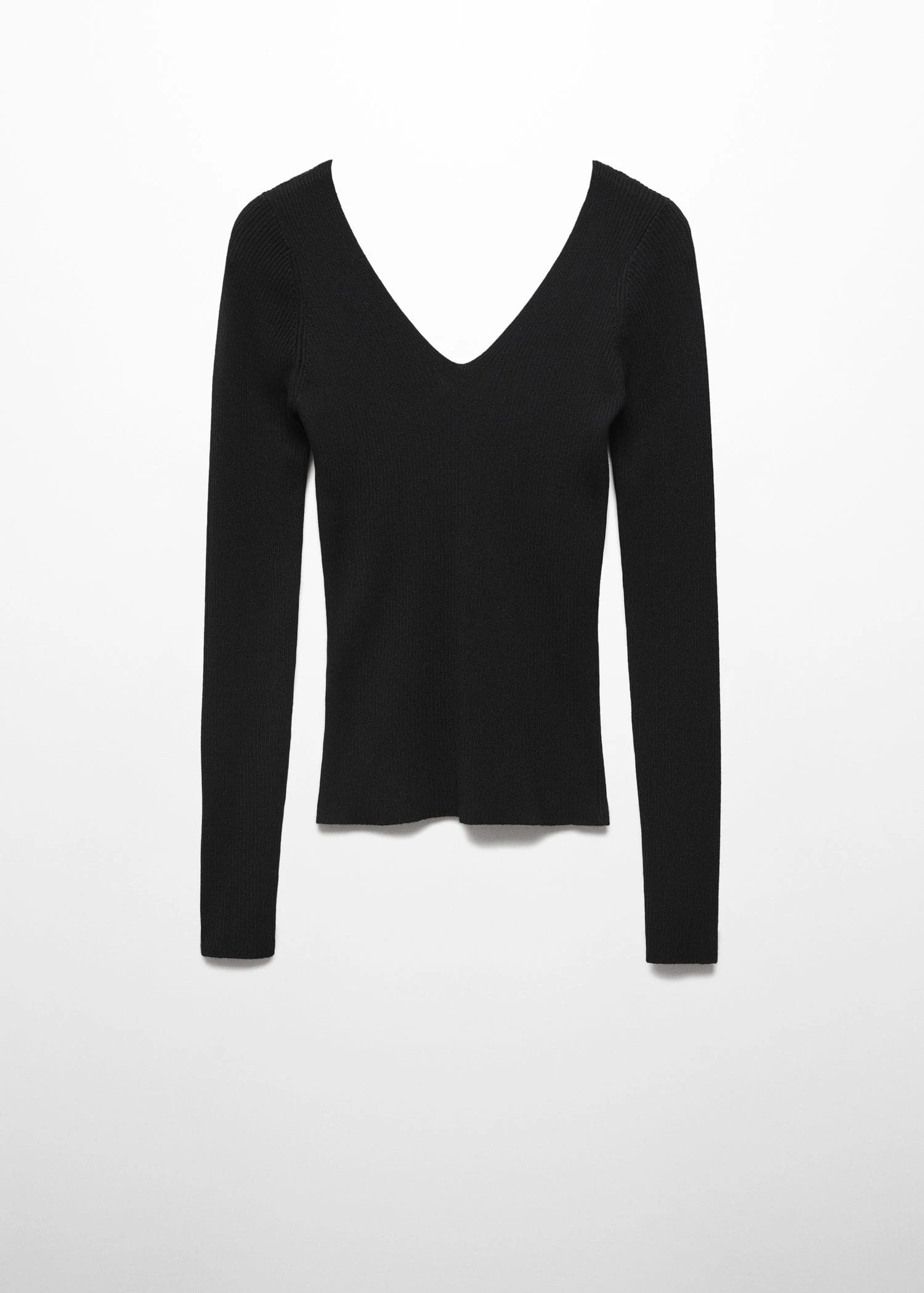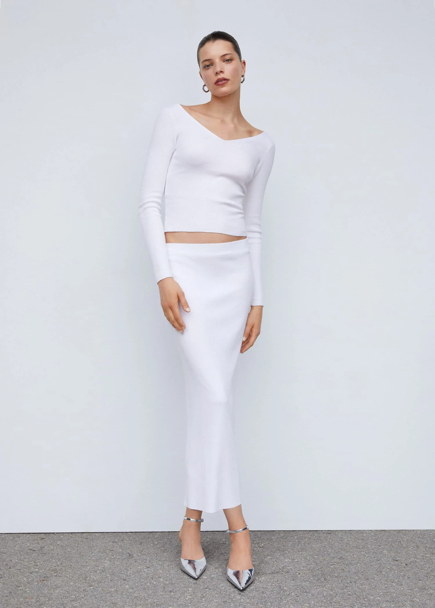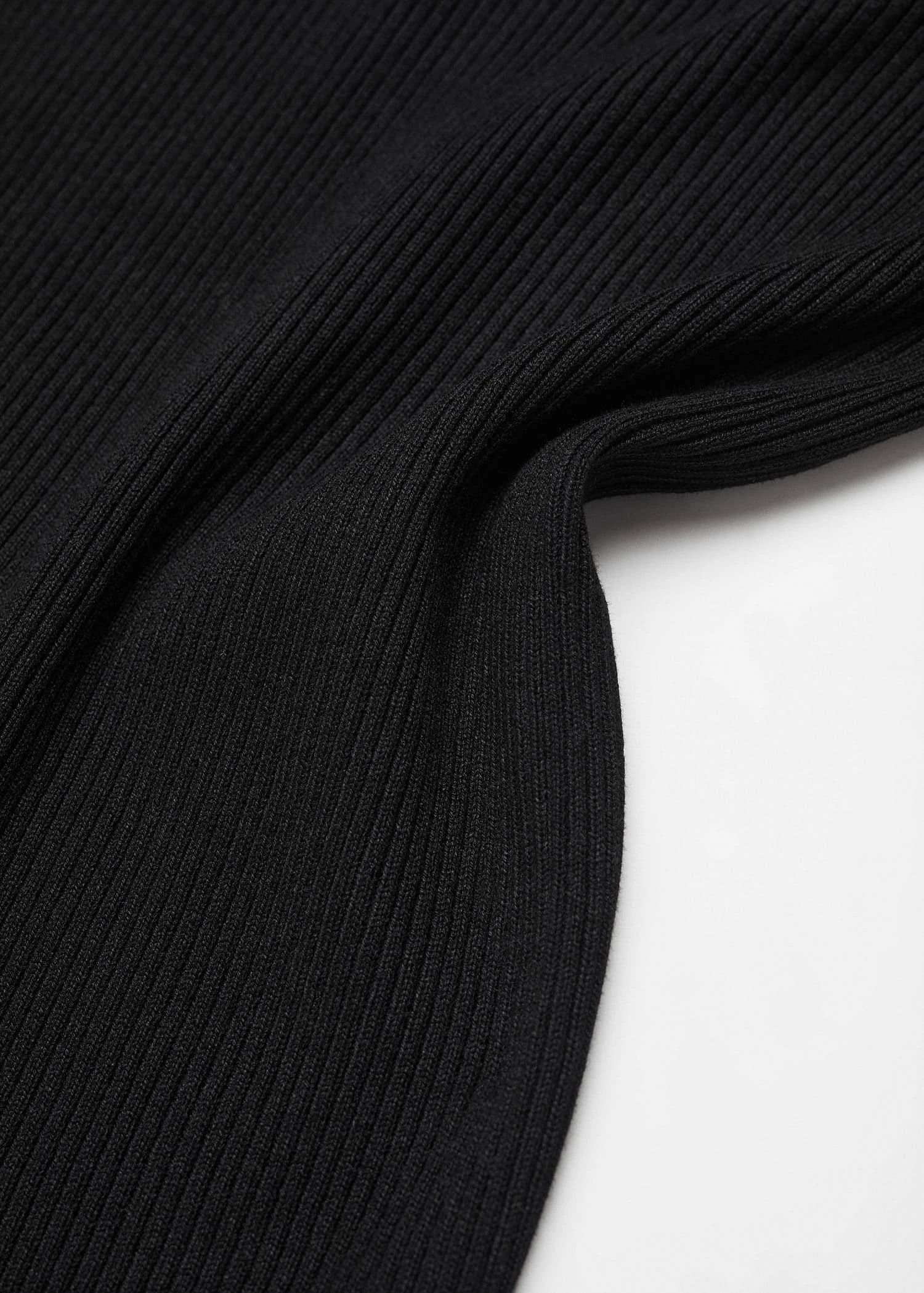 tissu en maille fine, tissu cotele, coupe cintree, col echancre, manches longues, encolure au dos, sans fermeture, total lookComposition: 72% viscose,28% polyamide