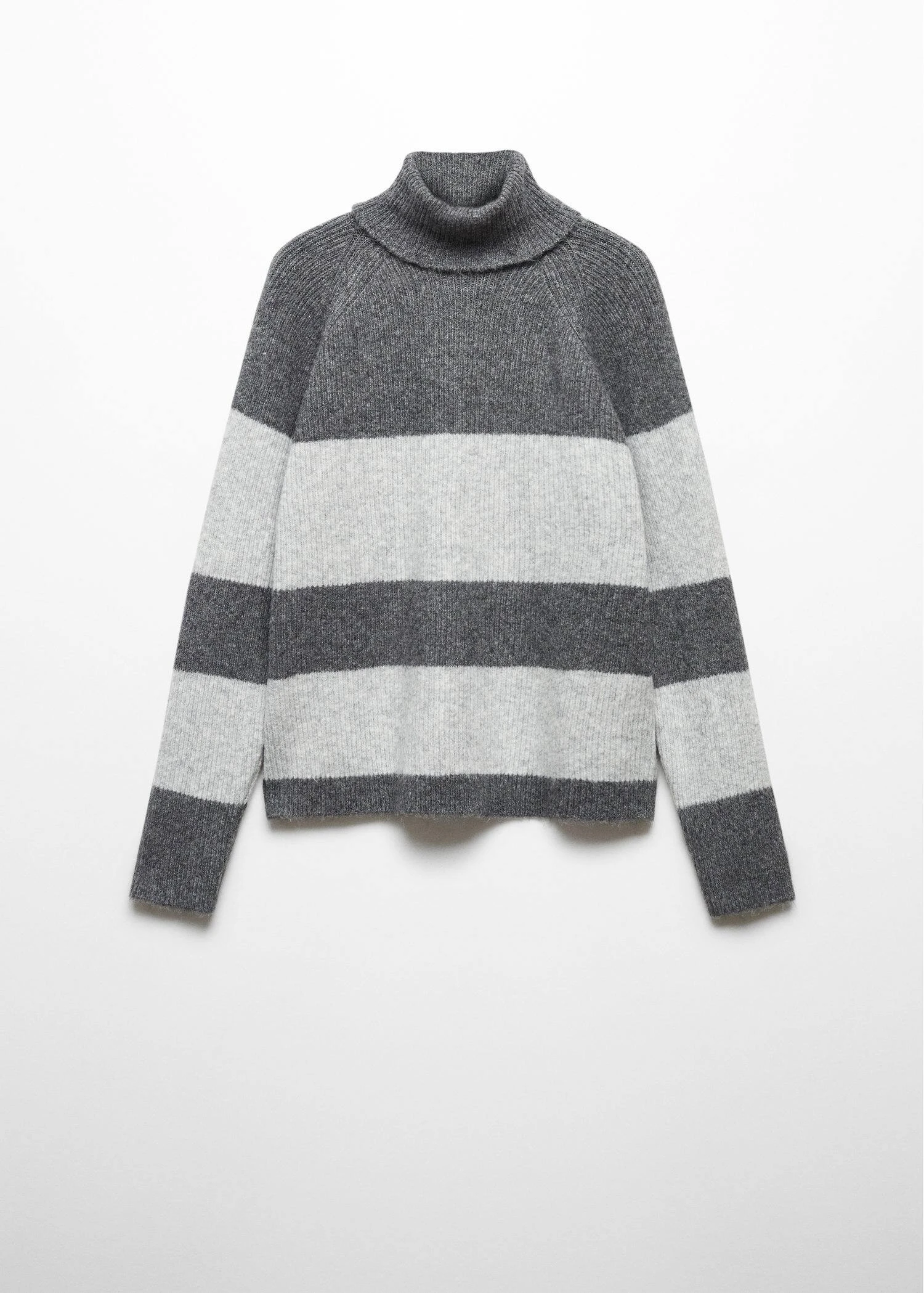 motif raye, coupe droite, col montant, col roule, manches longues, sans fermeture.Composition: 65% polyester,30% acrylique,3% laine,2% elasthanne