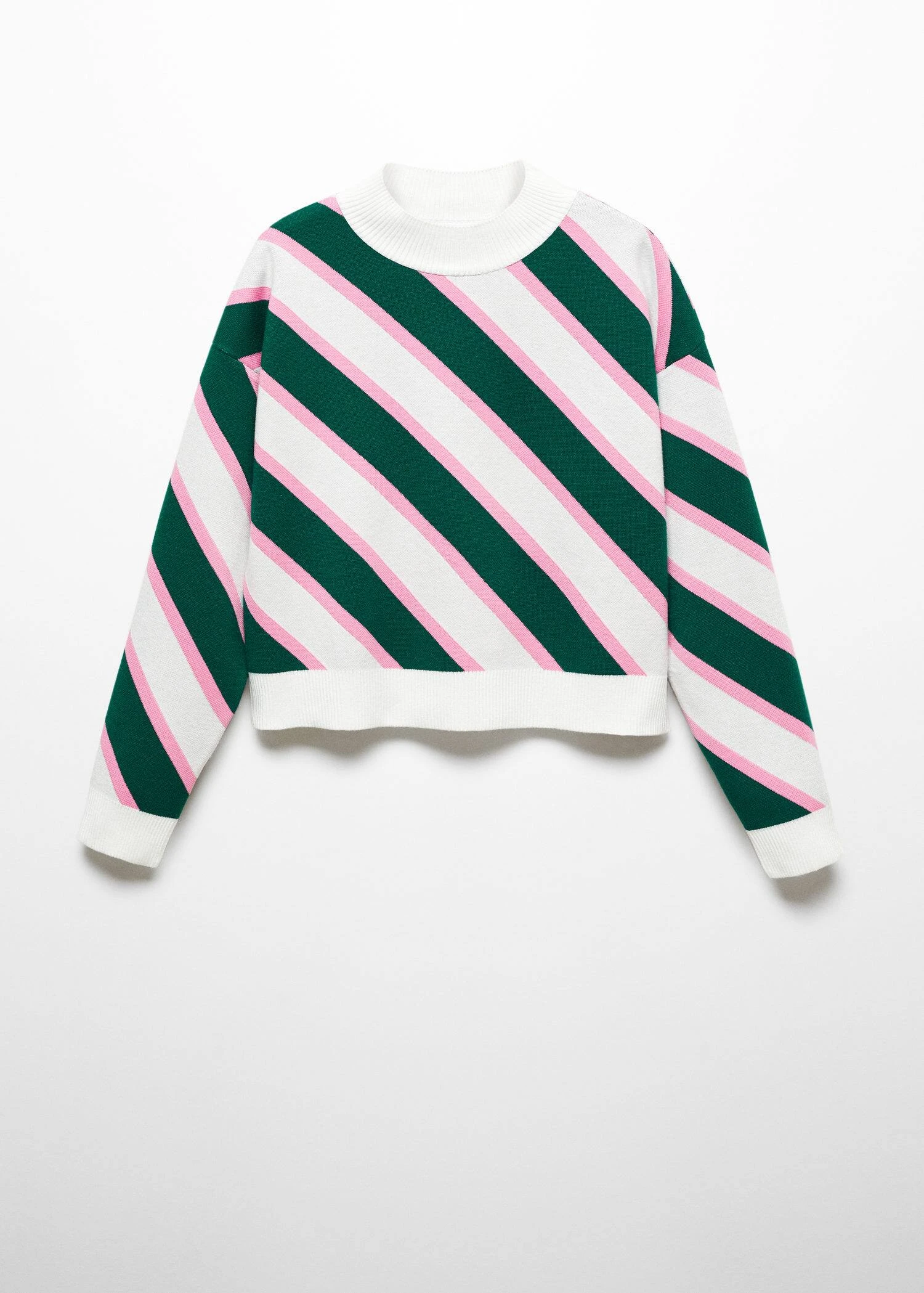 tissu en maille fluide, coupe droite, coupe courte, motif raye, col montant, manches longues, sans fermetureComposition: 45% polyester,39% viscose,16% polyamide