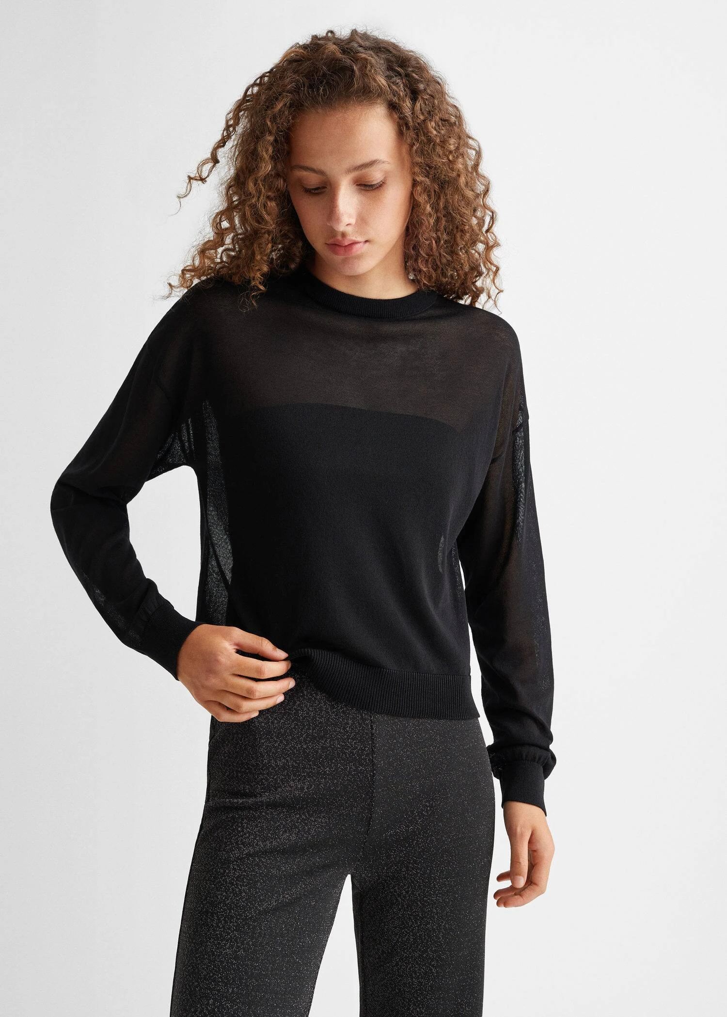 design transparent, coupe droite, col rond, sans fermeture, manches longuesComposition: 89% viscose,11% polyamide