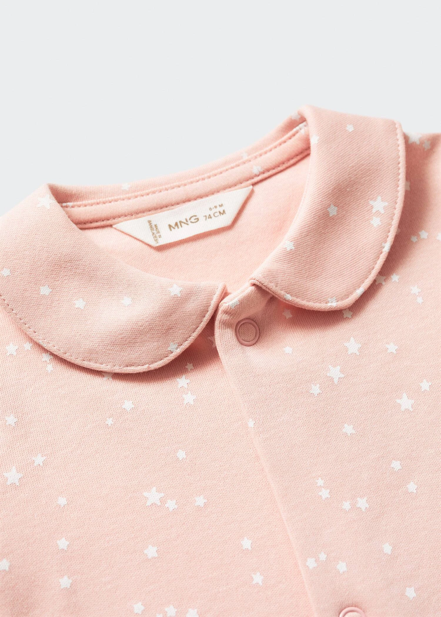 100 % coton, imprime etoiles, coupe longue, col claudine, manches longues, fermeture a boutons-pressionComposition: 100% coton