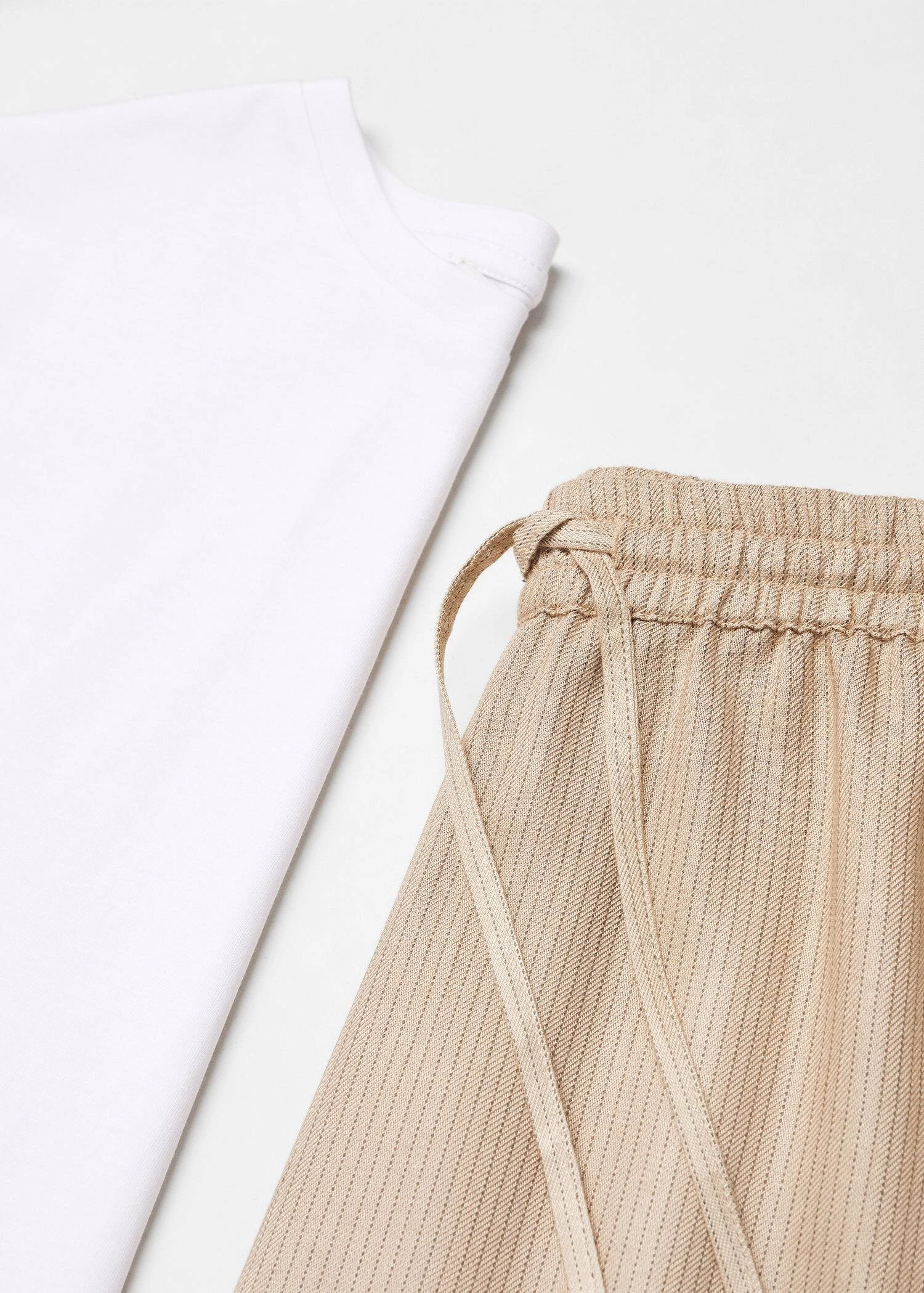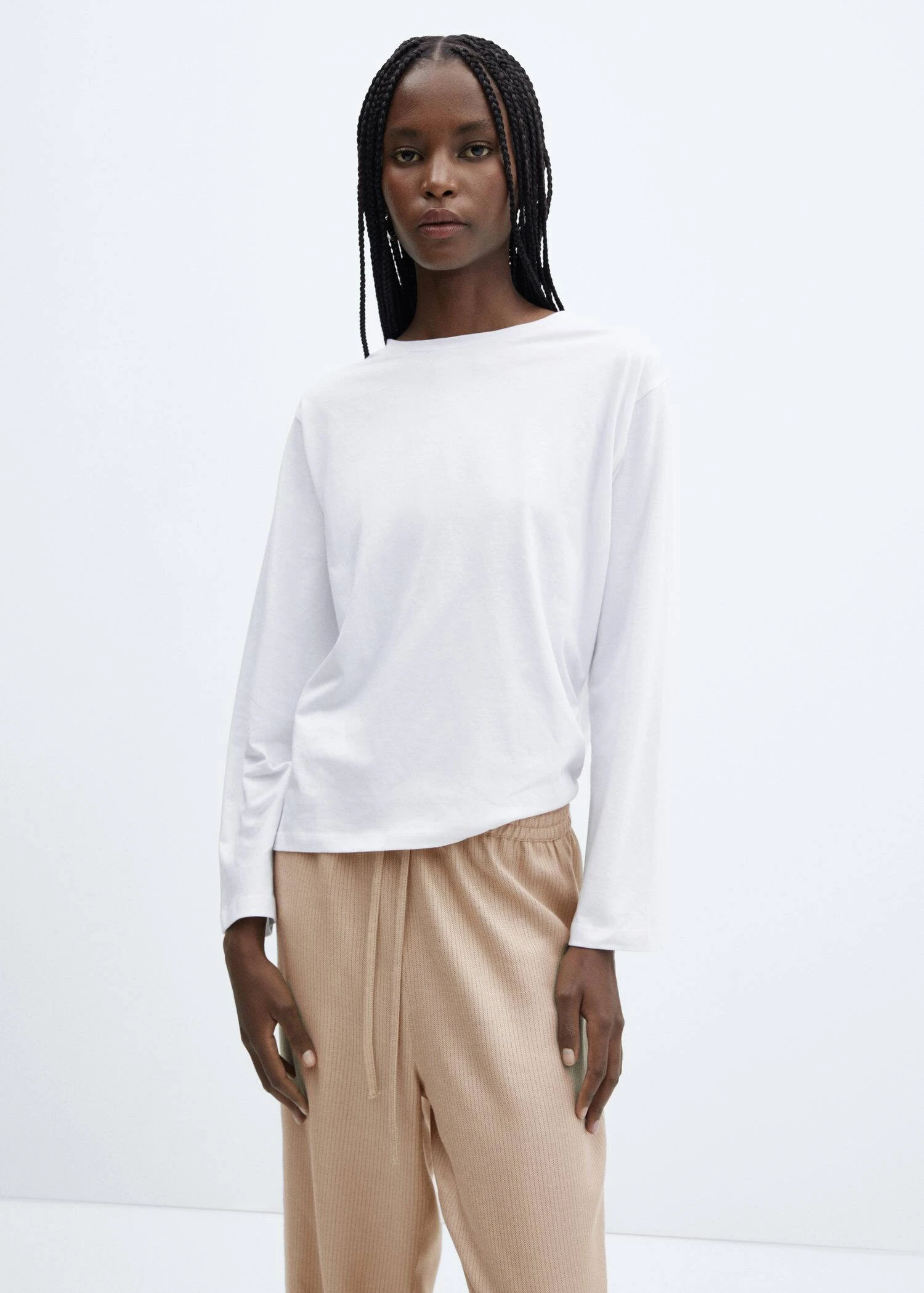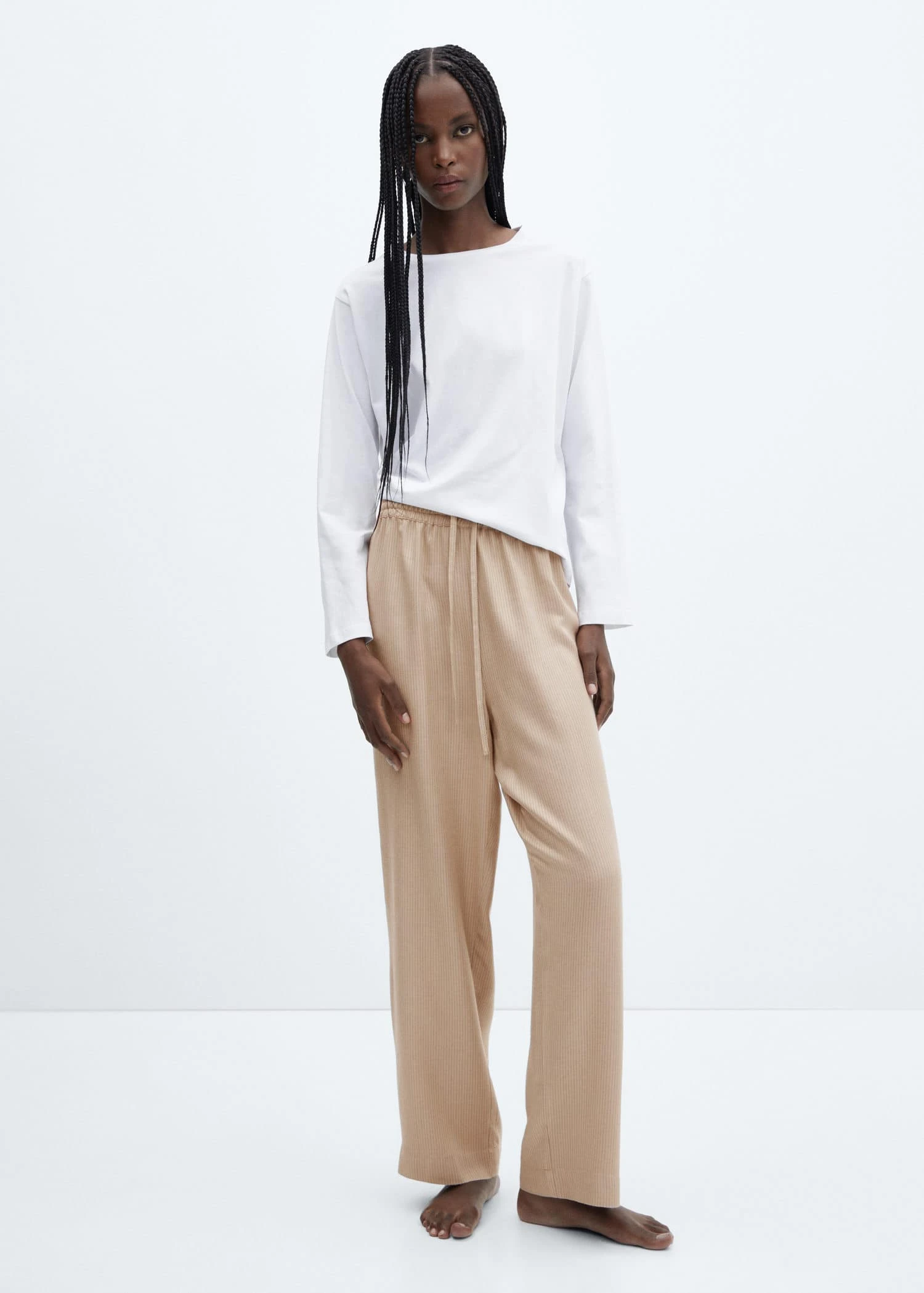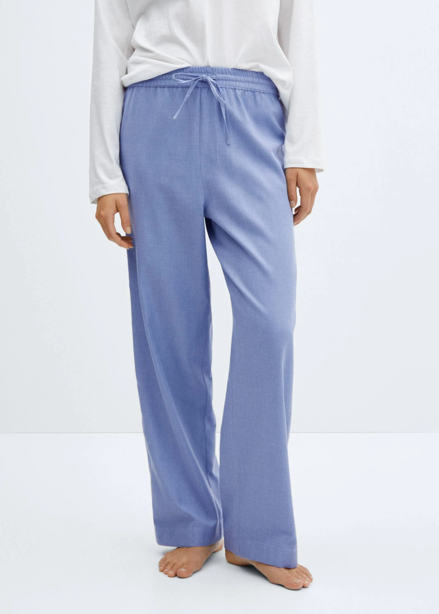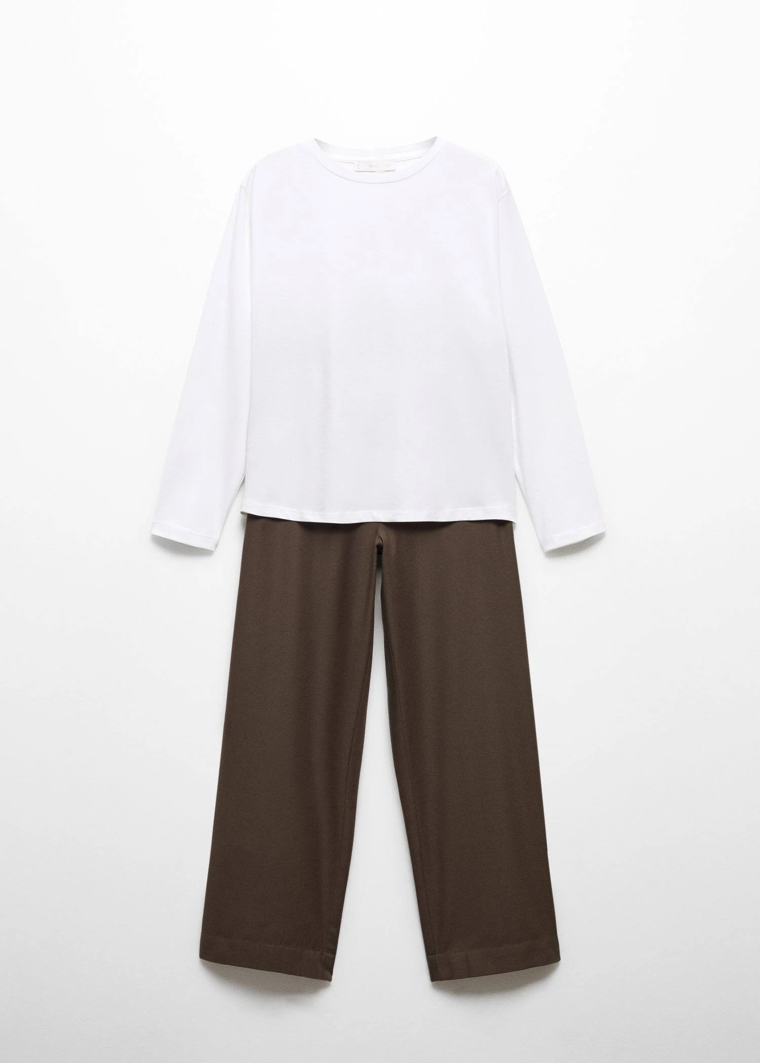 100 % coton, tissu fluide, coupe longue, coupe droite, col rond, manches longues, taille elastique avec fermeture a nœud, pack t-shirt et pantalon de pyjamaComposition: 100% coton. Pantalon: 65% polyester,35% viscose