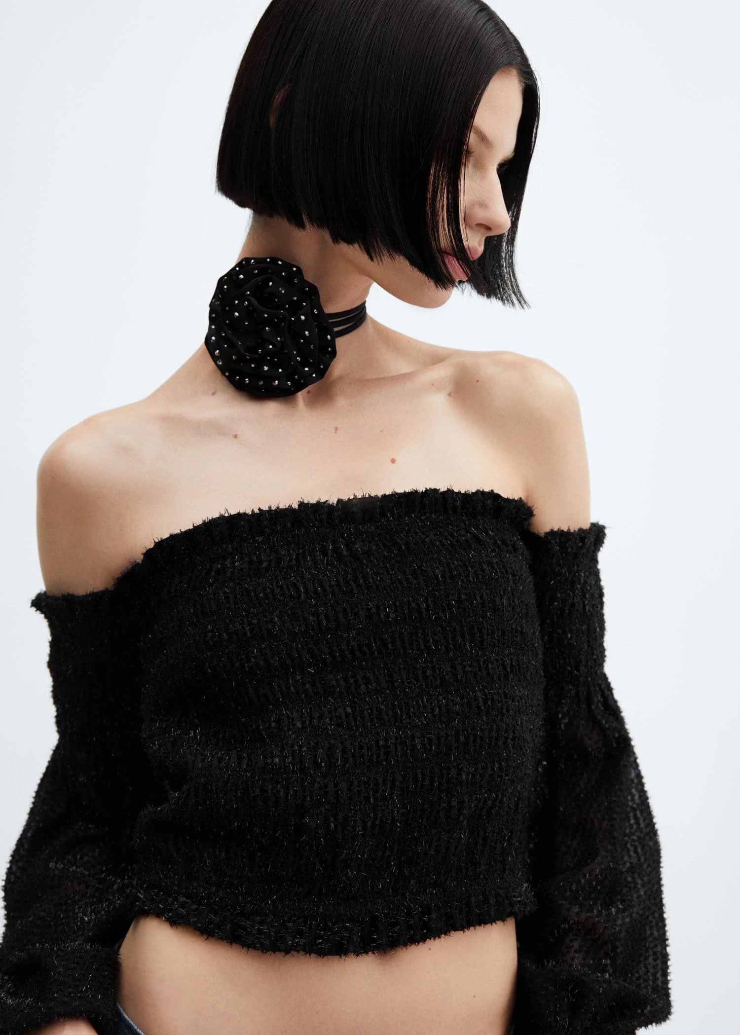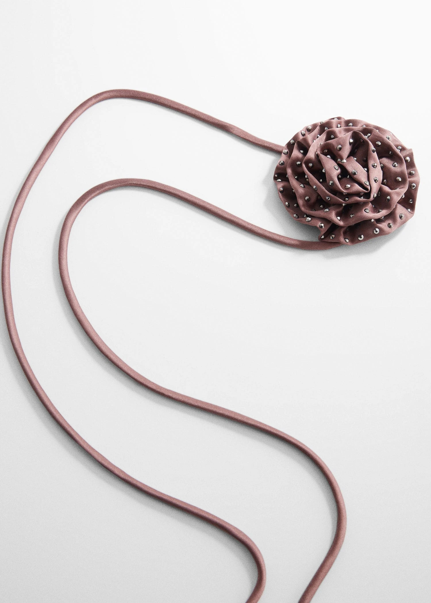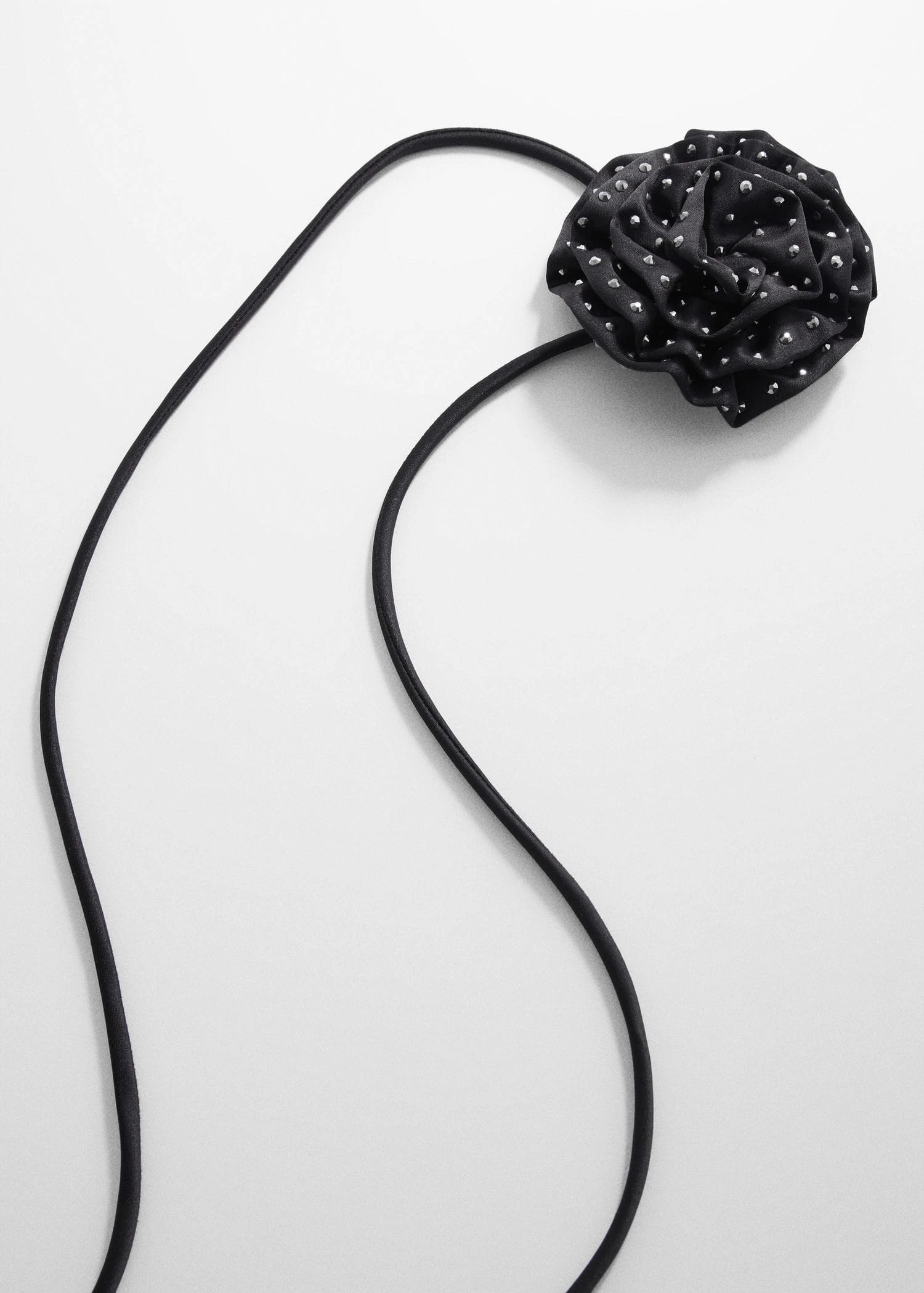 style choker, effet satine, maxifleur, clous decoratifs, collection fetes et ceremonies.Composition: 97% polyester,3% elasthanne