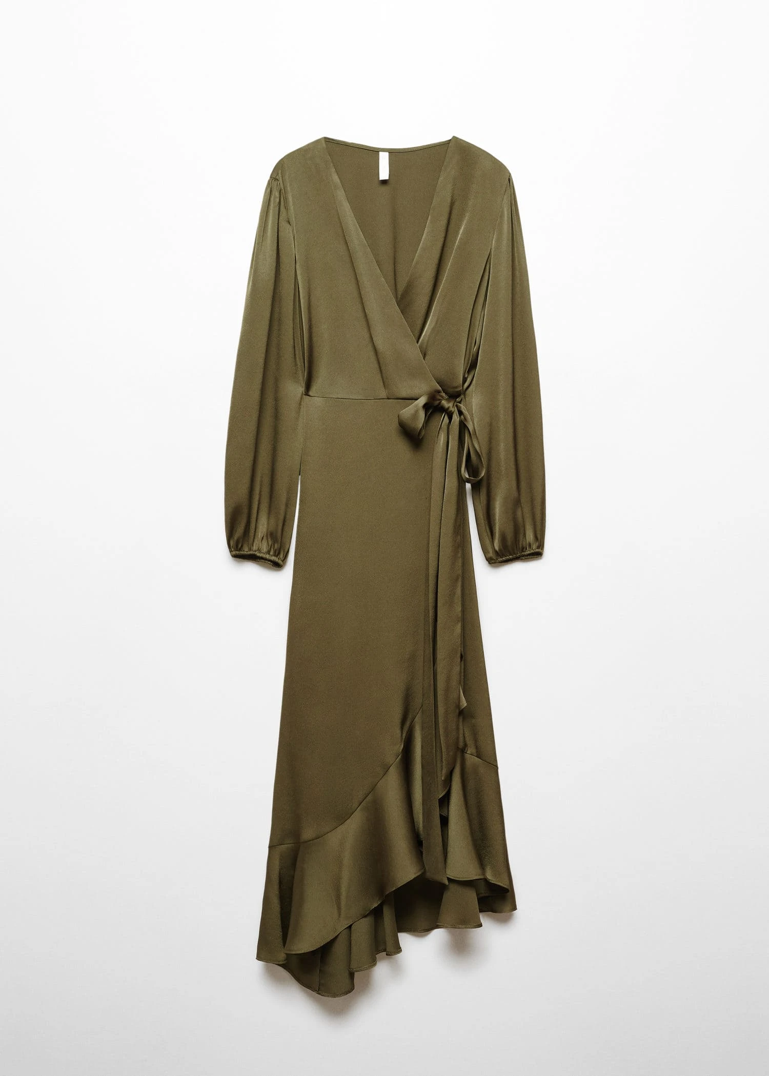 tissu fluide, effet satine, coupe midi, croise, evase, col en v, manches longues avec poignets elastiques, ruban a la taille avec fermeture a nœud, disponible plusComposition: 100% polyester. Ceinture: 100% polyester