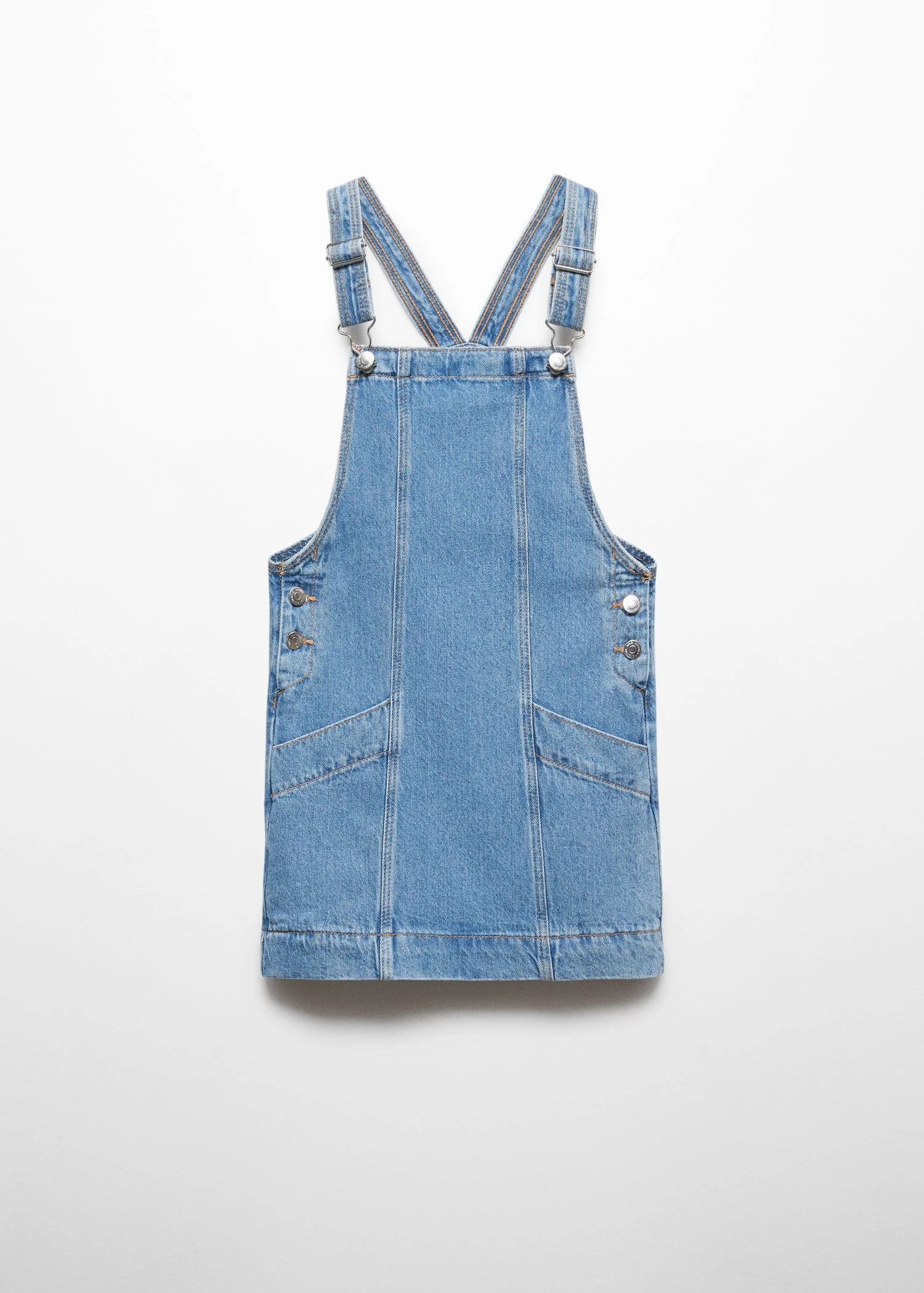 tissu en coton de style jean, coupe courte, bretelles larges, deux poches a rabat, col droit, sans manches, fermeture boutonneeComposition: 100% coton