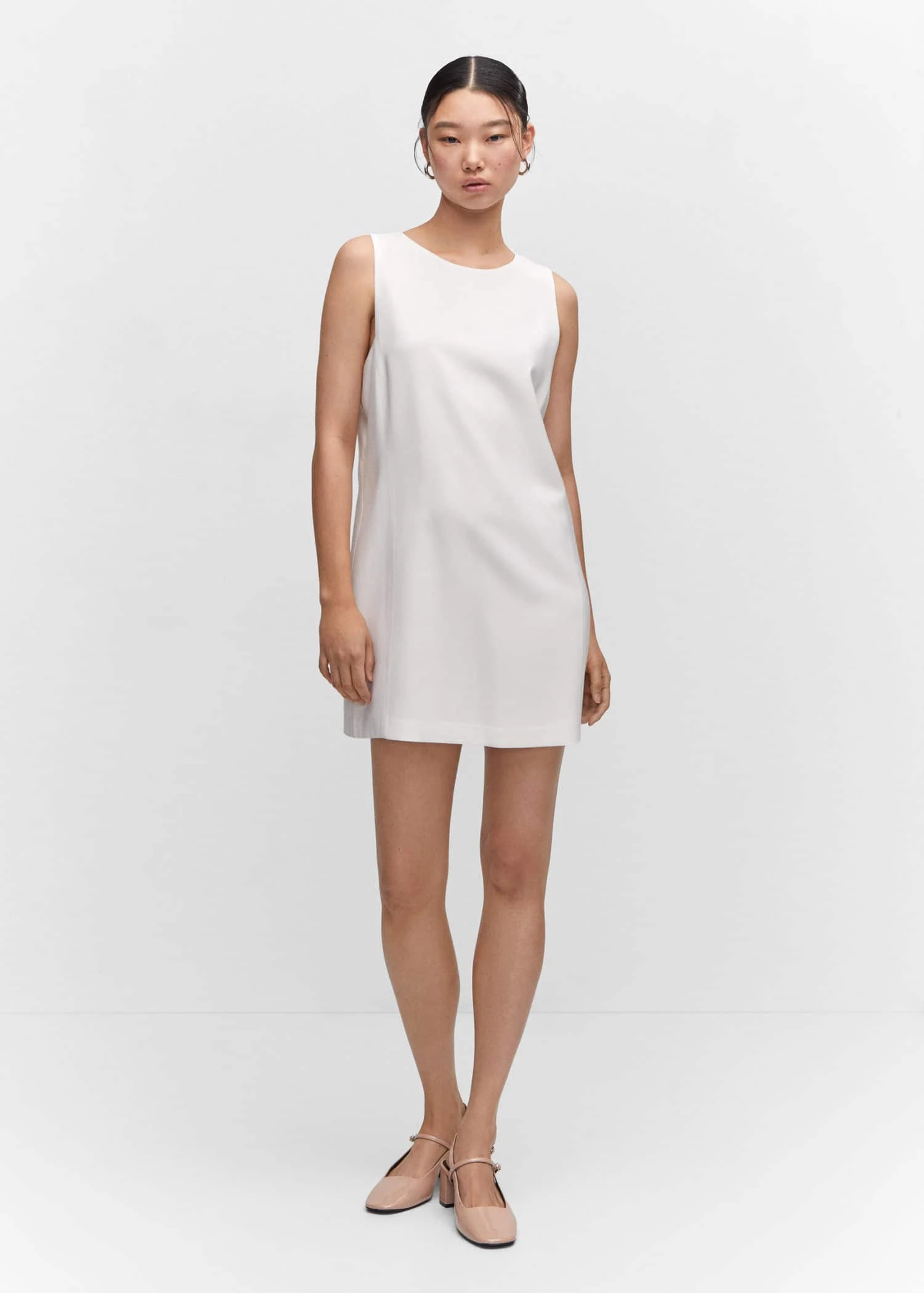 tissu fluide, coupe droite, coupe courte, col rond, sans manches, fermeture eclair a l’arriere, doublure, la couleur blanche est une exclusivite en ligneComposition: 93% viscose,7% polyester. Doublure: 100% viscose