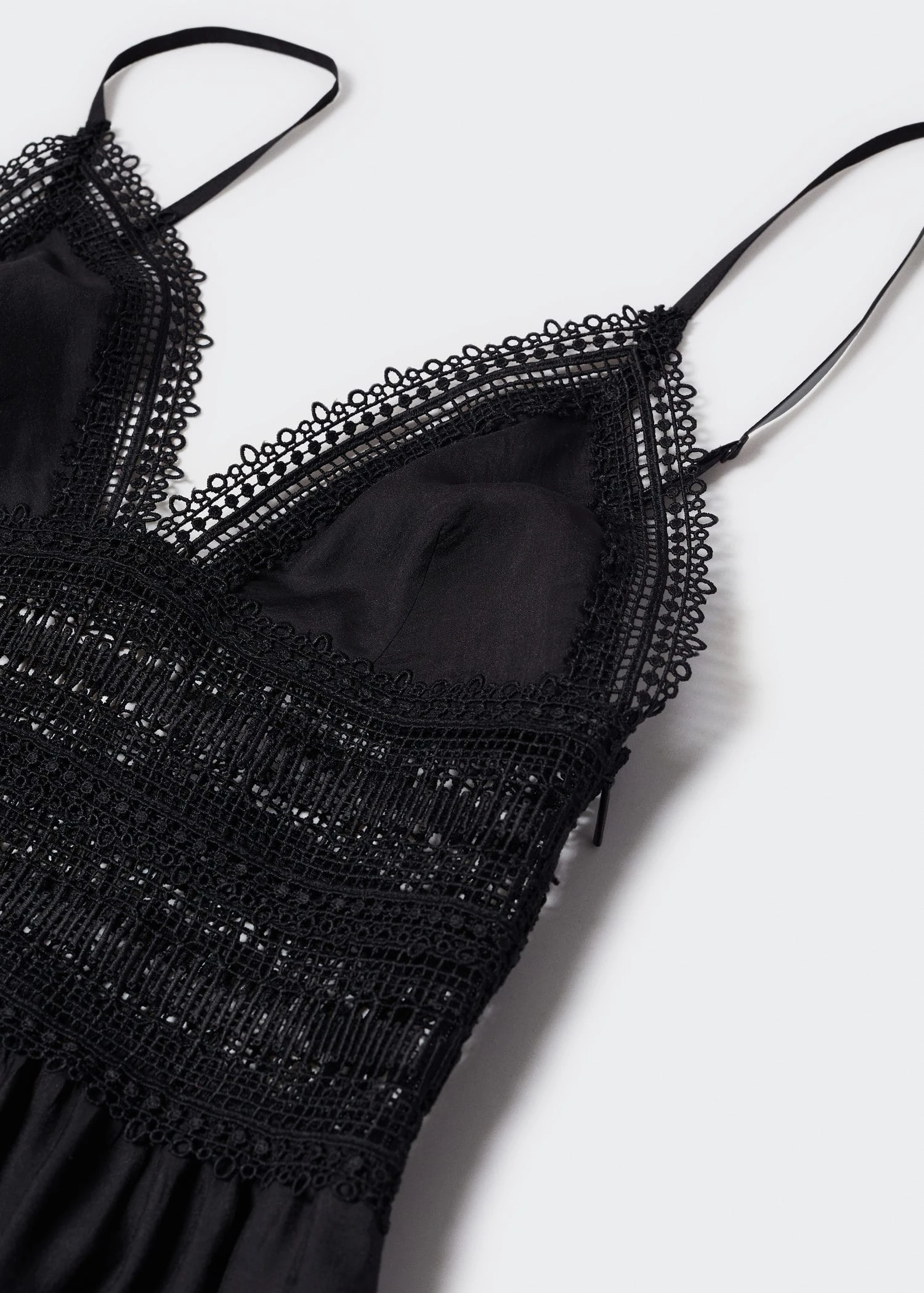 tissu en modal melange, tissu fluide, evase, coupe longue, col en v, bretelles fines ajustables, encolure au dos, empiecements en dentelle, bas evase, sans fermeture, collection fetes et ceremoniesComposition: 79% modal,21% polyester. Dentelle: 100% polyester