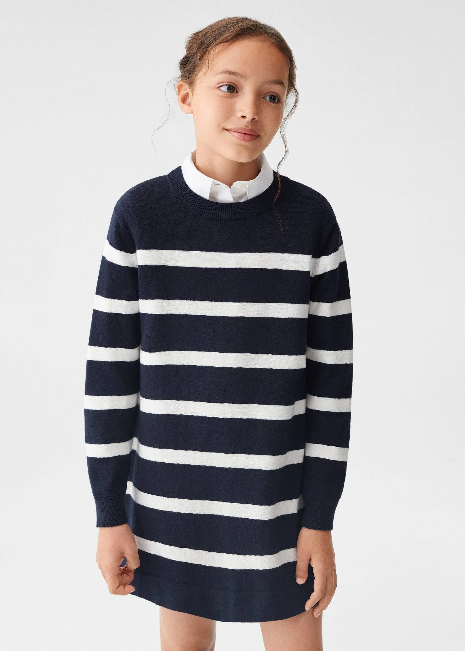 tissu en coton, tissu en maille fine, coupe longue, coupe droite, imprime rayures, col rond, manches longues, sans fermetureComposition: 70% coton,30% polyamide