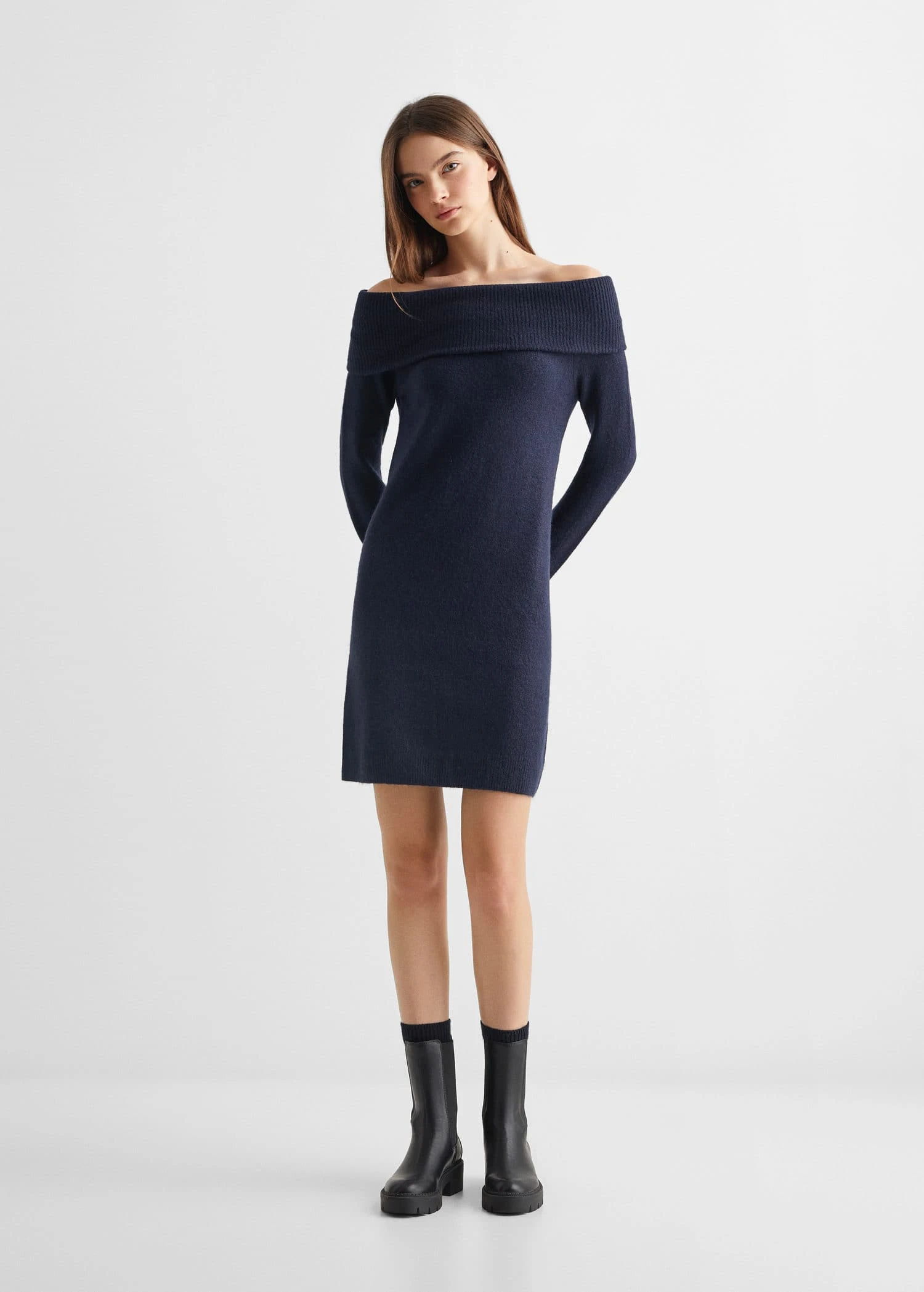 tissu en maille, epaules denudees, coupe droite, coupe courte, manches longues, sans fermeture.Composition: 54% acrylique,43% polyester,3% elasthanne