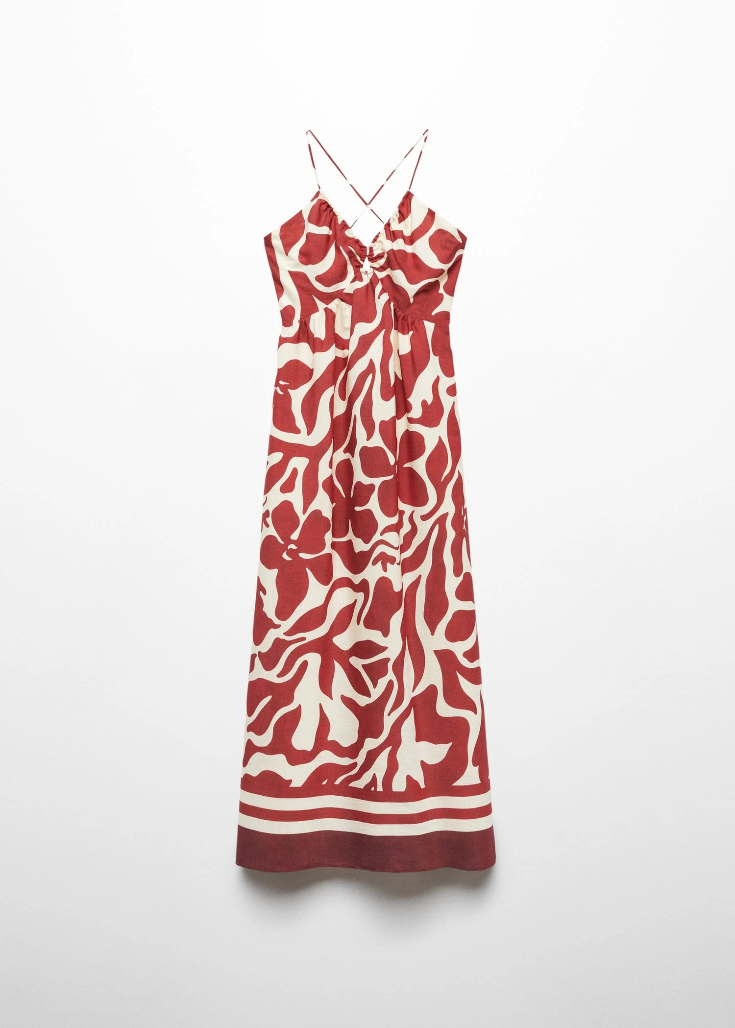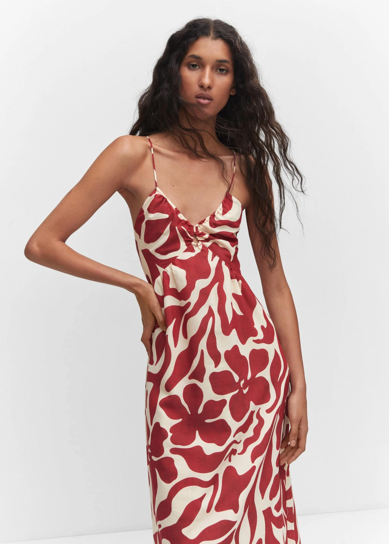 tissu fluide, evase, coupe longue, imprime fleurs, col echancre, bretelles fines croisees, dos nu, lien a nouer au dos, details fronces, doublureComposition: 86% viscose,11% polyester,3% polyamide. Doublure: 80% polyester,20% coton