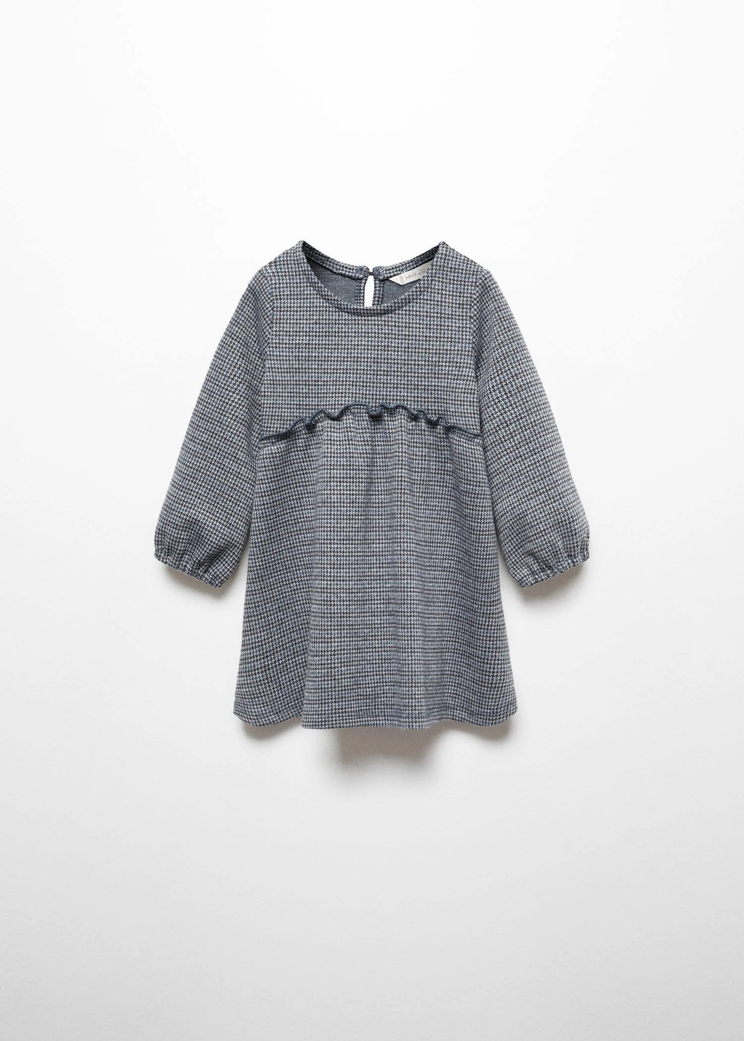pied-de-poule, coupe courte, droit, col rond, manches longues, fermeture arriereComposition: 88% polyester,10% viscose,2% elasthanne