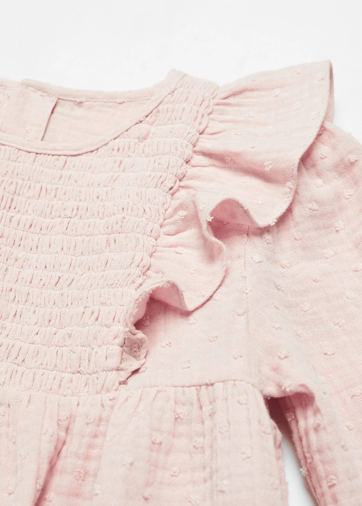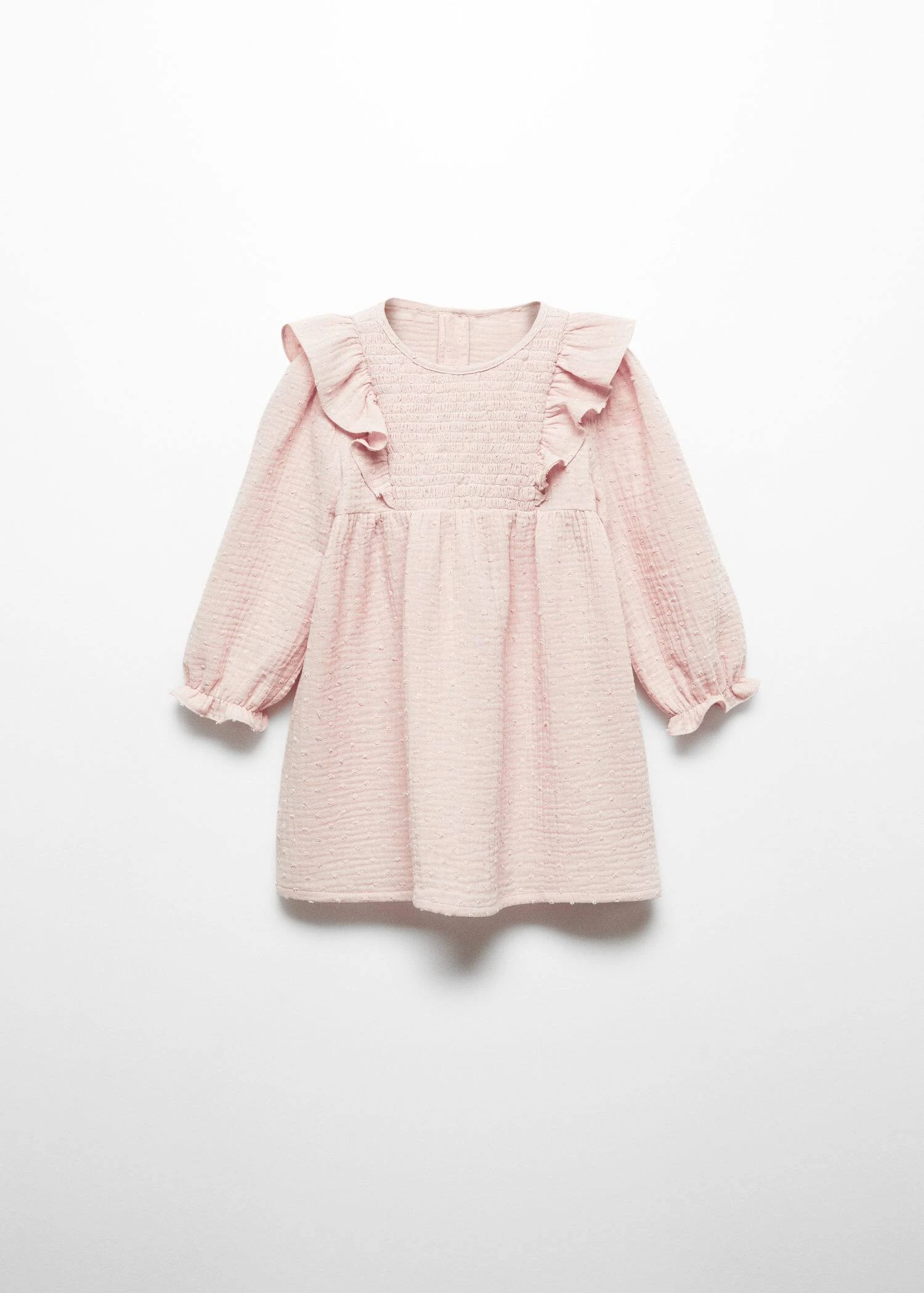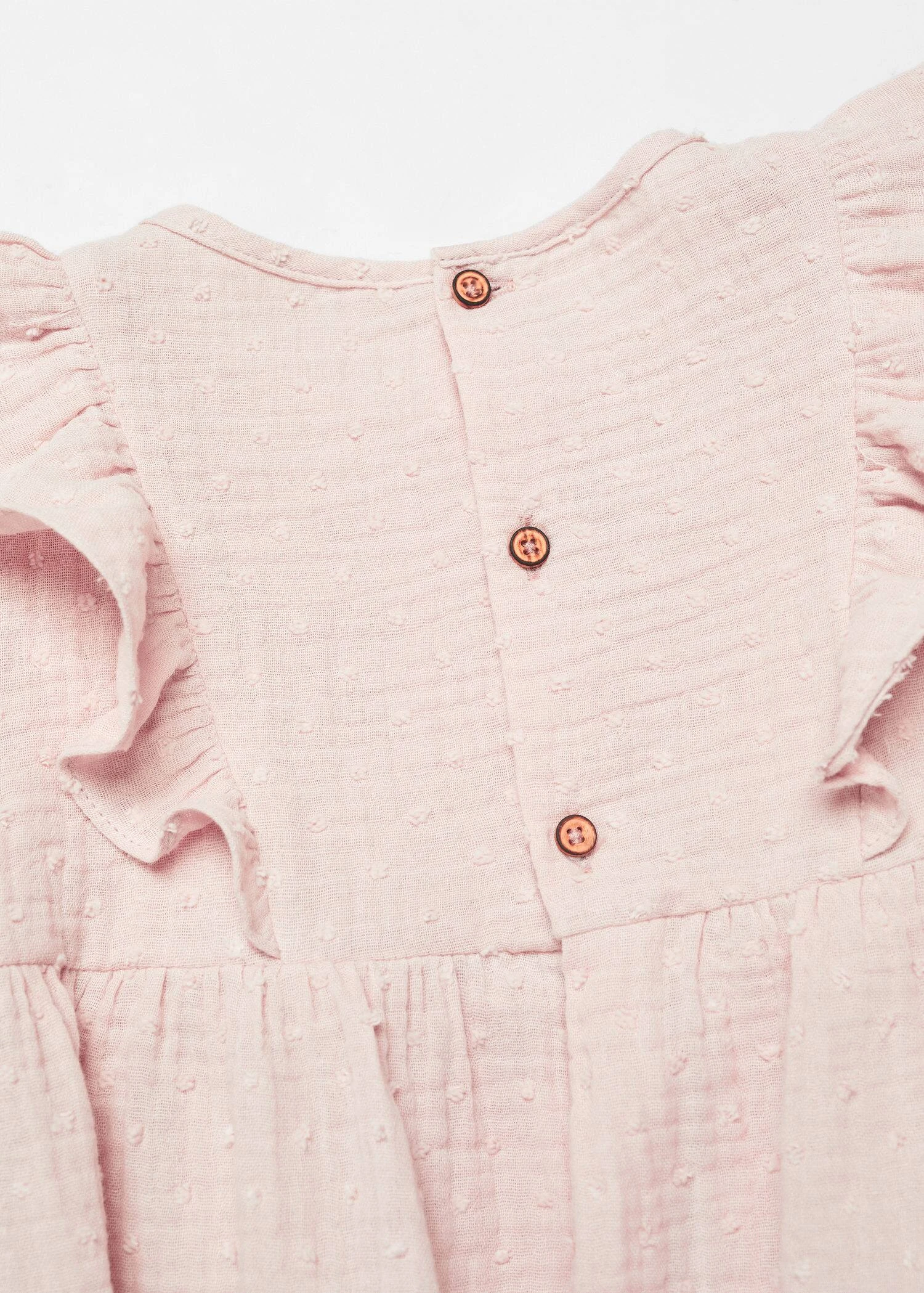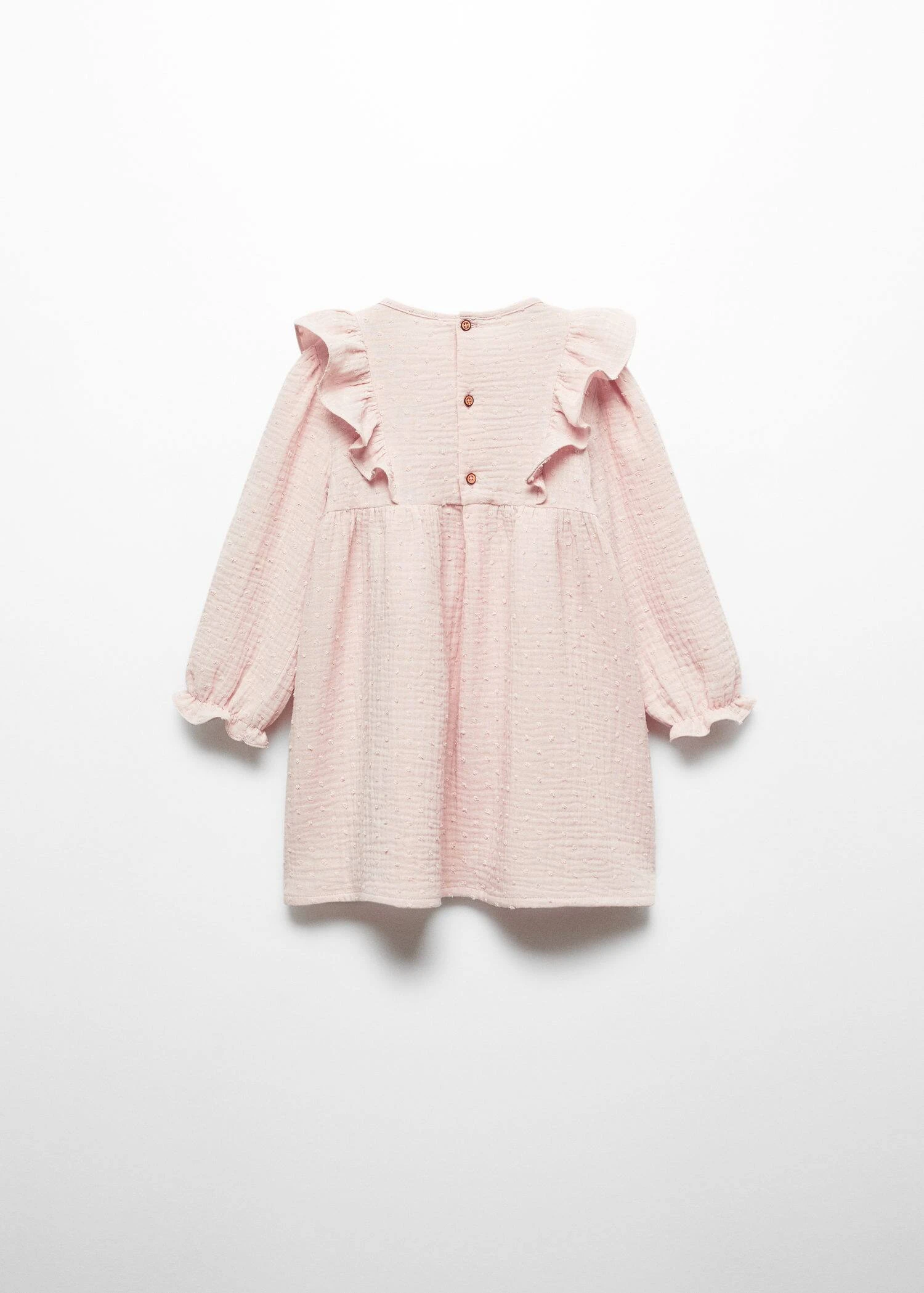 tissu 100 % coton, tissu plumetis, evase, coupe midi, col rond, manches longues, details volantes, fermeture boutonnee a l’arriereComposition: 100% coton