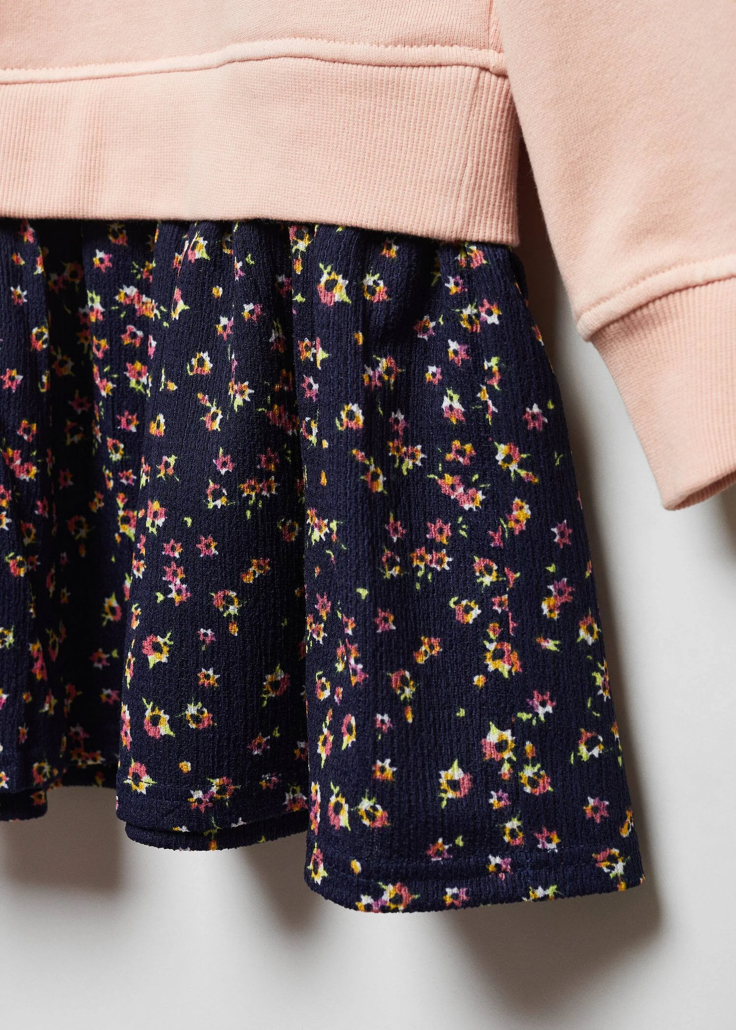 tissu en coton, jupe imprimee, imprime floral, style oversize, coupe courte, col rond, manches longues, robe chemiseComposition: 100% coton. Jupe: 98% polyester,2% elasthanne
