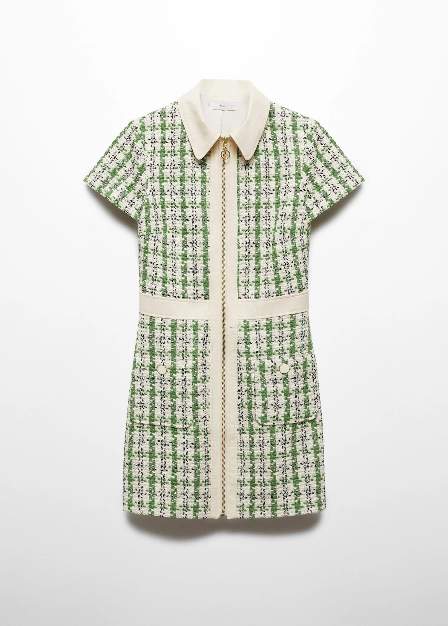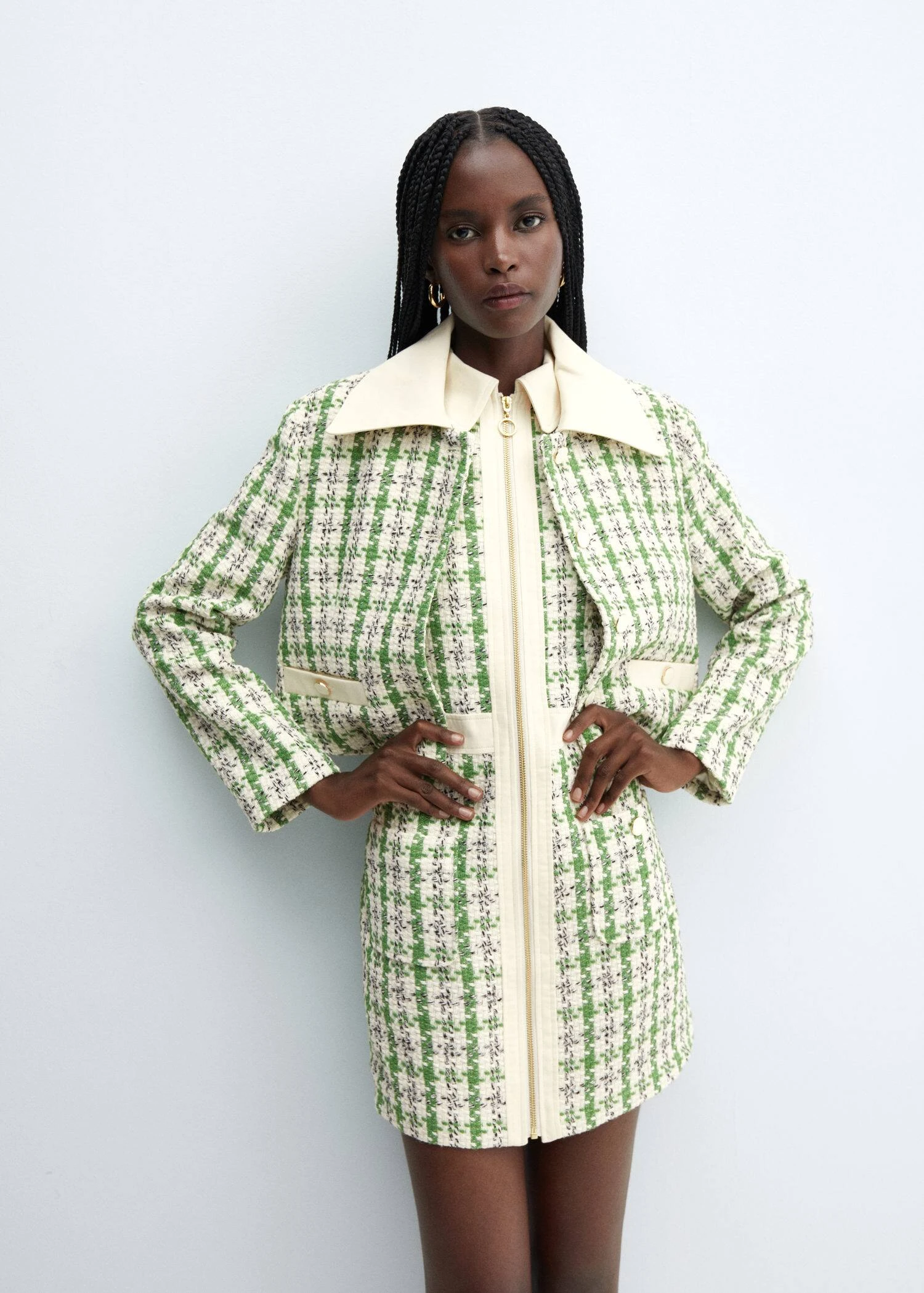 tissu tweed, coupe courte, col chemise, manches courtes, deux poches plaquees sur le devant, fermeture eclair a l’avant, doublure, total lookComposition: 76% polyester,15% acrylique,7% polyamide,2% coton. Doublure: 100% polyester