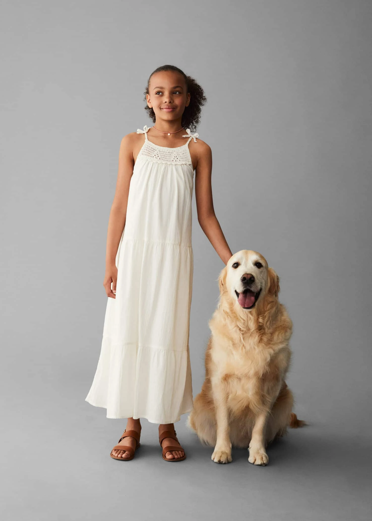 100 % coton, coupe longue, detail en crochet, bretelles croisees, fines bretelles avec fermeture a nœud, base volantee, col rond, sans manchesComposition: 100% coton. Doublure: 100% coton. Broderie: 100% coton