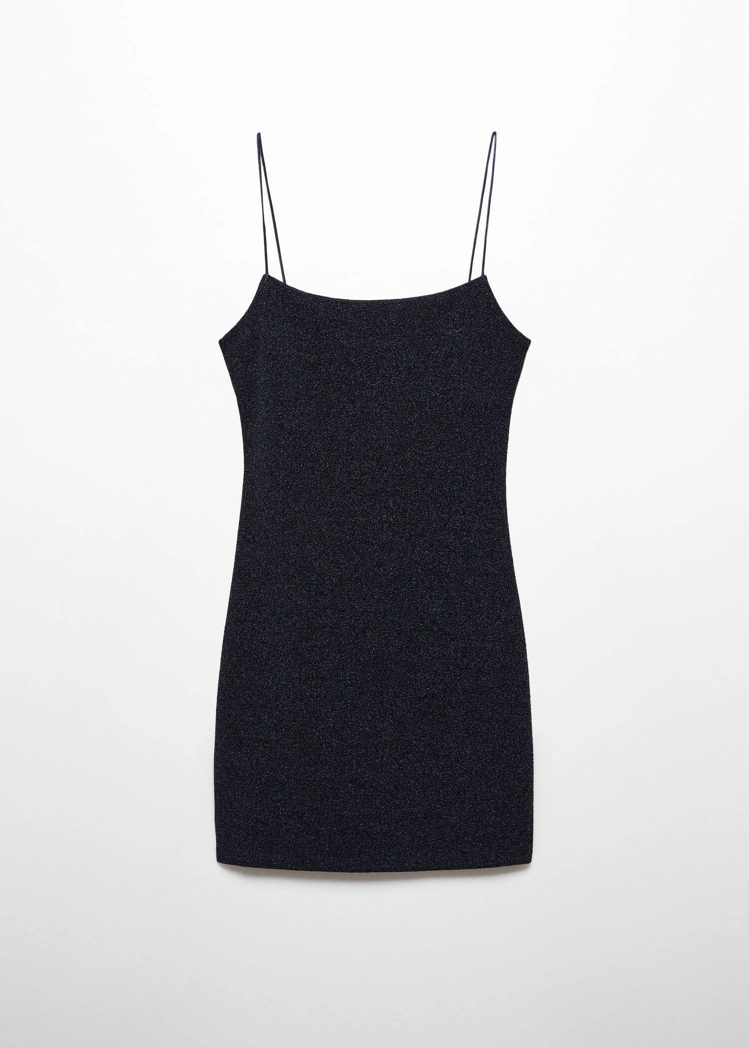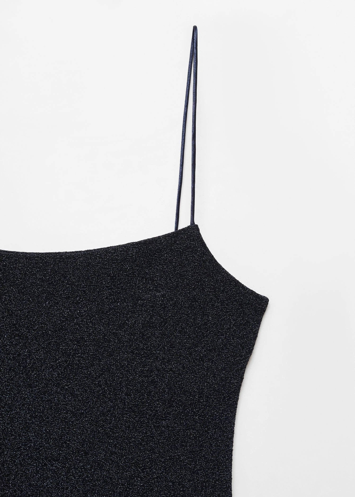 tissu lurex, tissu elastique, coupe courte, ajuste, col echancre, sans manches, bretelles fines, sans fermeture, collection fetes et ceremonies.Composition: 62% polyester,29% polyester avec revêtement de aluminium,9% elasthanne
