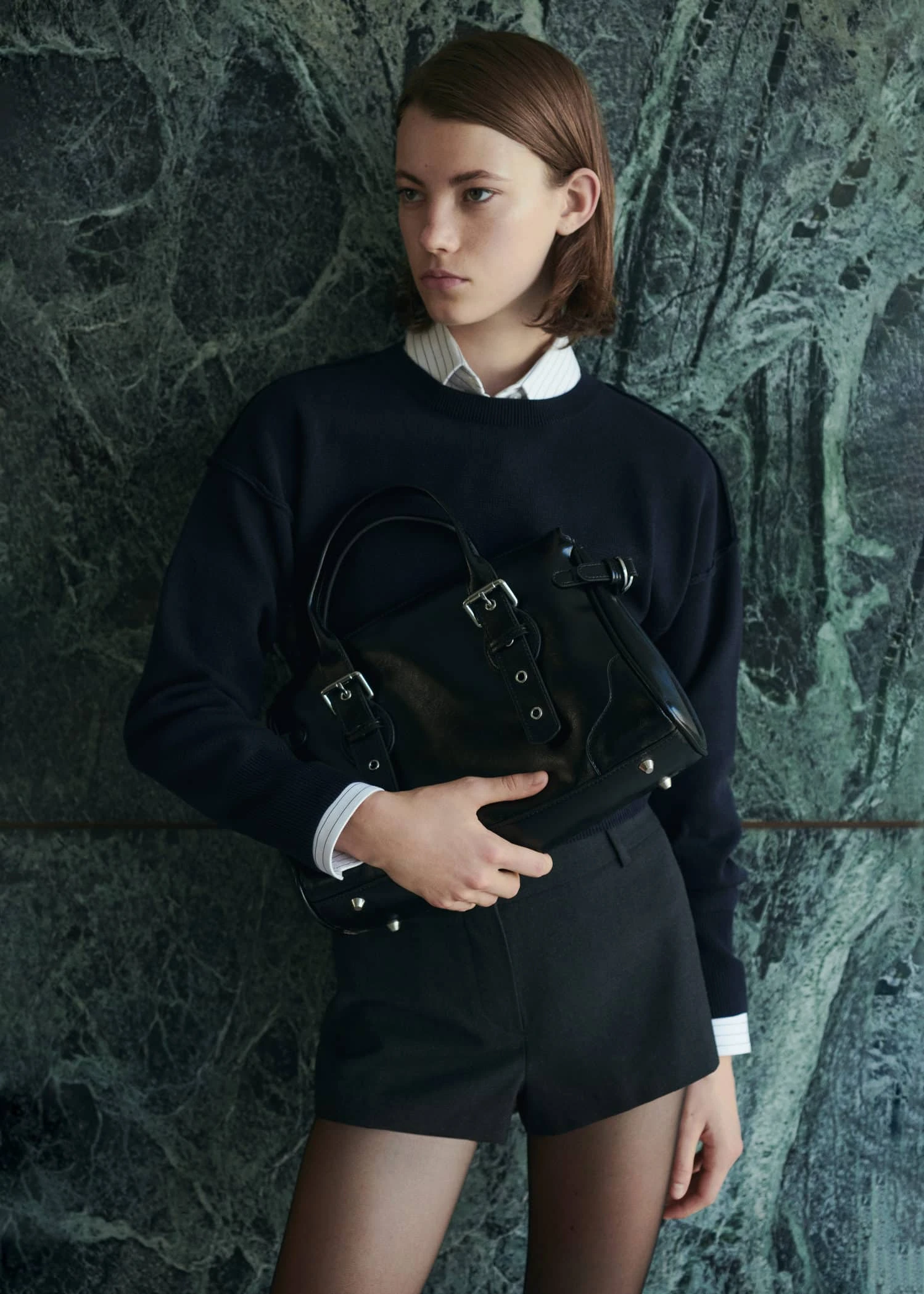 similicuir, grande taille, double anse courte, anse longue reglable et amovible, boucles decoratives, poche interieure, fermeture eclair sur le dessusComposition: 100% polyurethane. Doublure: 100% polyester