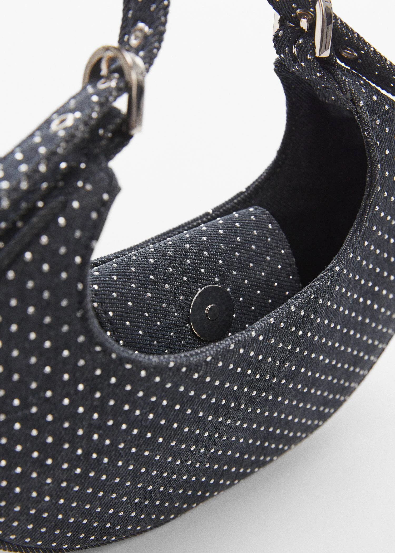 petite taille, tissu en coton de style jean, anse pour un porter epaule, anse reglable, fermeture a boutons magnetiques, ornements decoratifs brillants, doublure, collection fetes et ceremoniesComposition: 100% coton. Doublure: 100% coton. Ornement: 100% aluminium