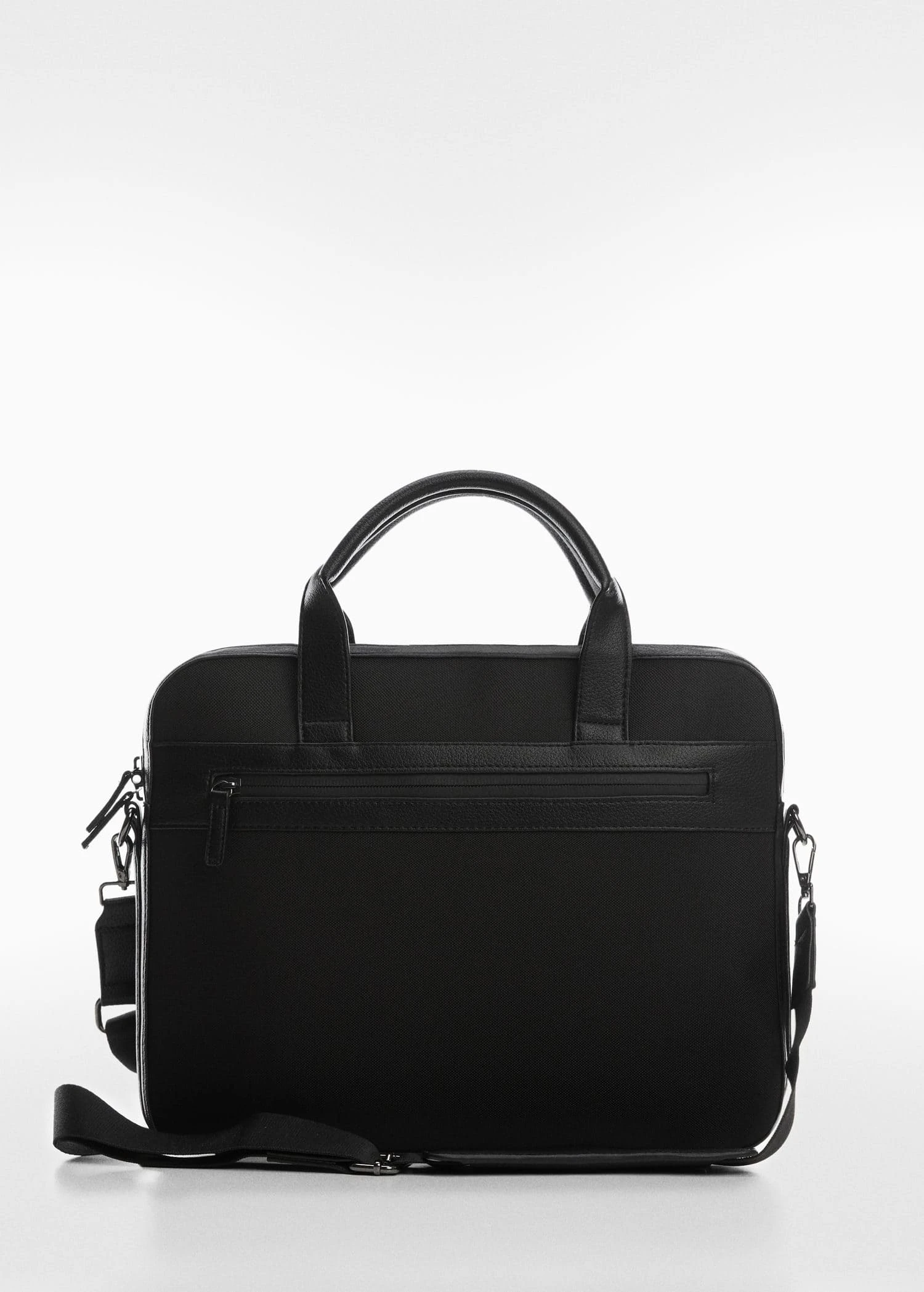 fabrique a partir de materiaux recycles, similicuir, bande pour faciliter le transport avec une valise de type trolley, compartiment principal zippe, compartiment secondaire pour les appareils electroniques avec fermeture velcro et fermeture eclair dissimulee, bandouliere amovible et reglable , deux poignees courtes, doublure en polyesterComposition: 70% polyester recyclé,30% polyurethane. Doublure: 100% polyester
