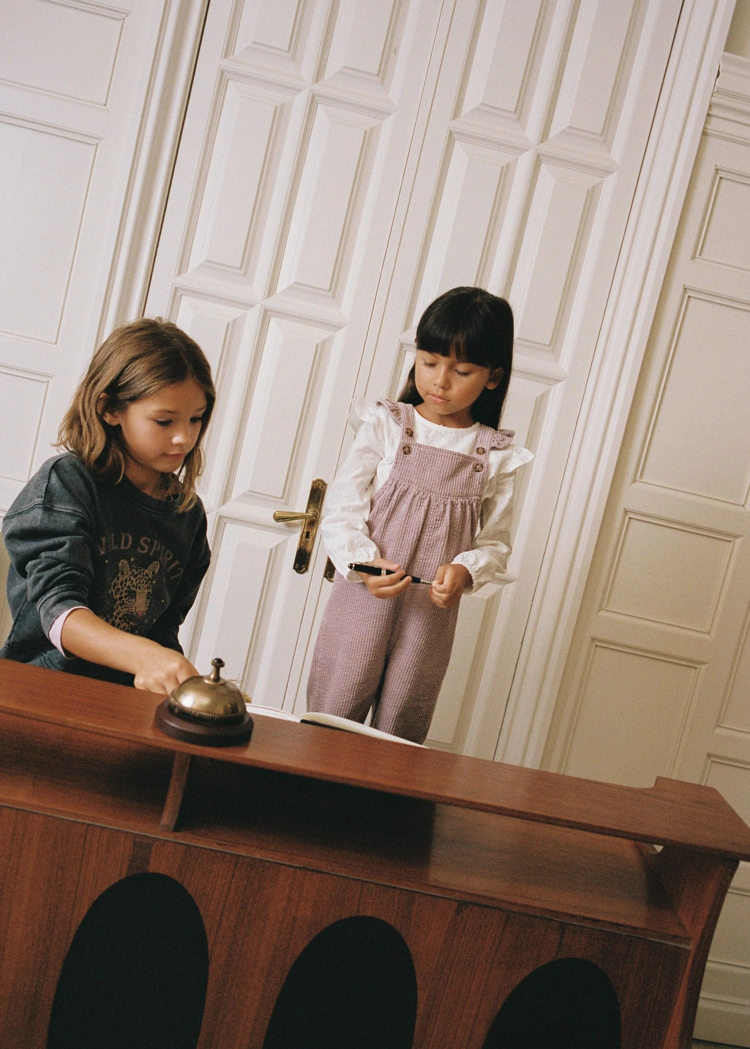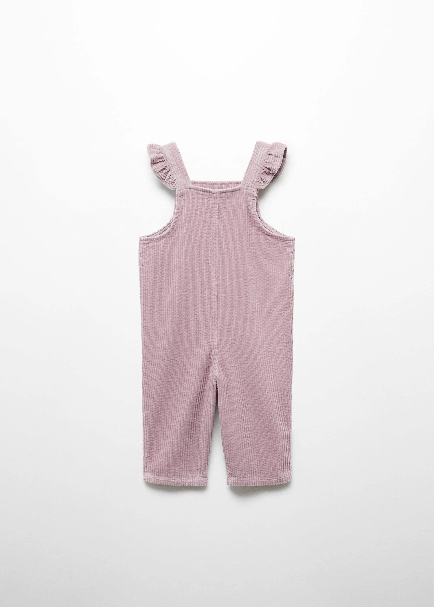 tissu en velours cotele, coupe droite, coupe longue, bretelles a volant, fermeture boutonneeComposition: 100% coton