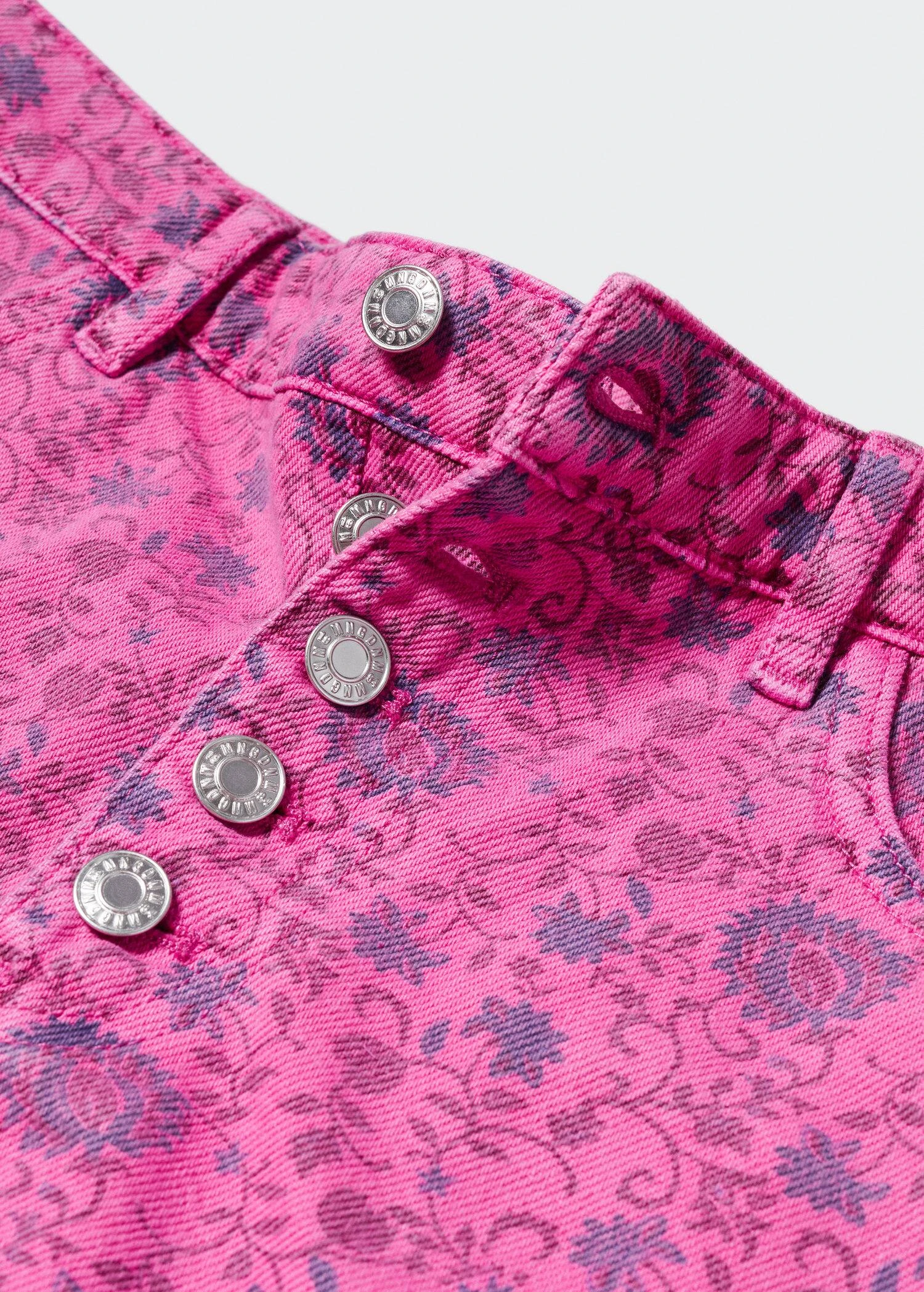 tissu en coton de style jean, coupe droite, coupe courte, taille haute, imprime floral, passants pour la ceinture, cinq poches, fermeture boutonnee sur le devantComposition: 100% coton
