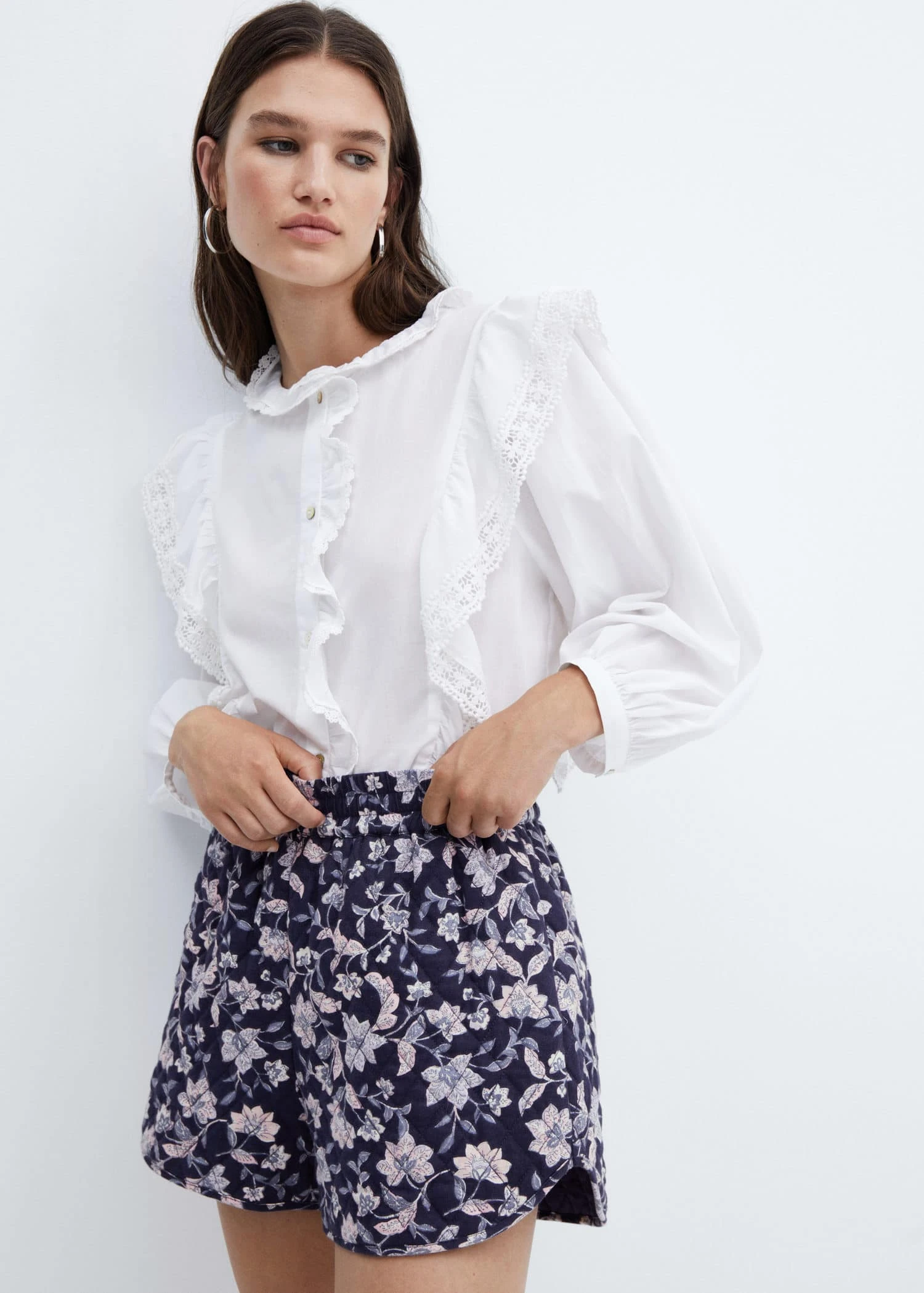 tissu 100 % coton, matelasse, coupe courte, taille haute, motifs floraux, taille elastiquee, sans fermeture, total lookComposition: 100% coton. Doublure: 100% coton. Rembourrage: 100% polyester