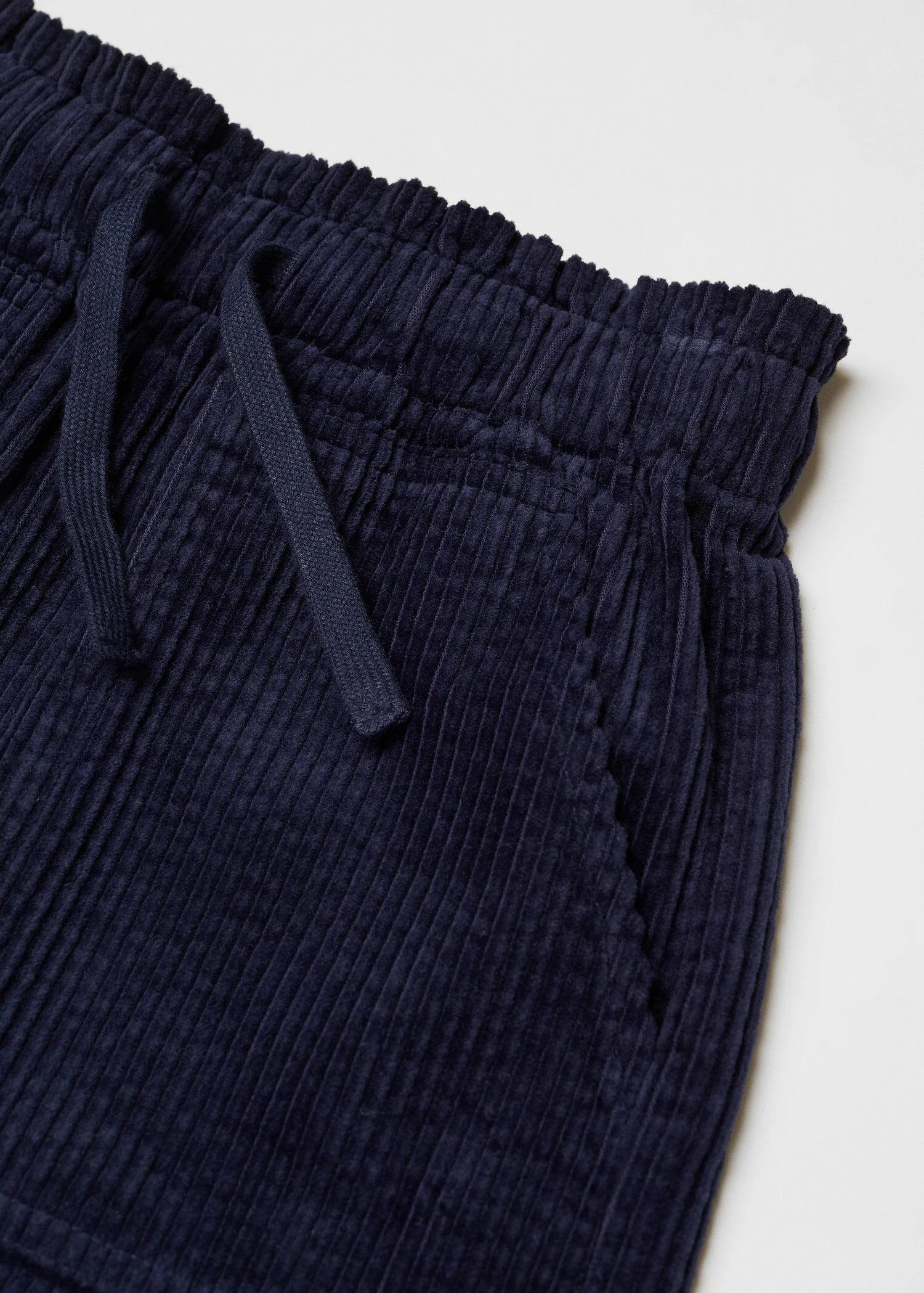 100 % coton, paperbag, tissu en velours cotele, coupe droite, coupe courte, taille elastique avec cordon, deux poches lateralesComposition: 100% coton