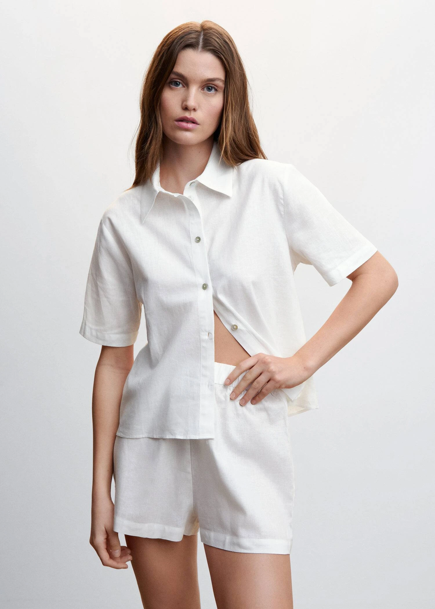 100 % lin, tissu fluide, coupe droite, coupe courte, taille elastiquee, sans fermetureCOMPOSITION:55% LIN,45% VISCOSE