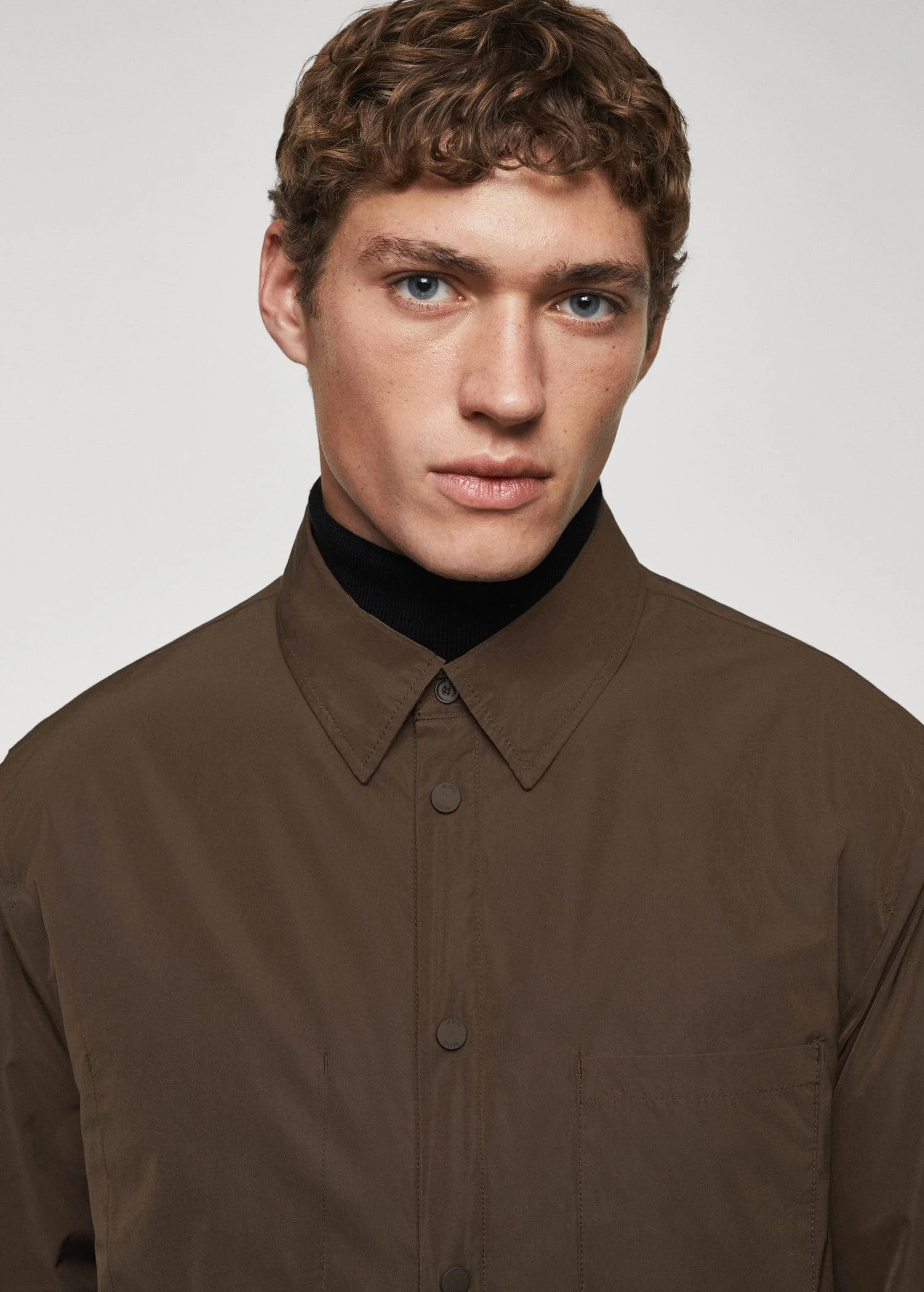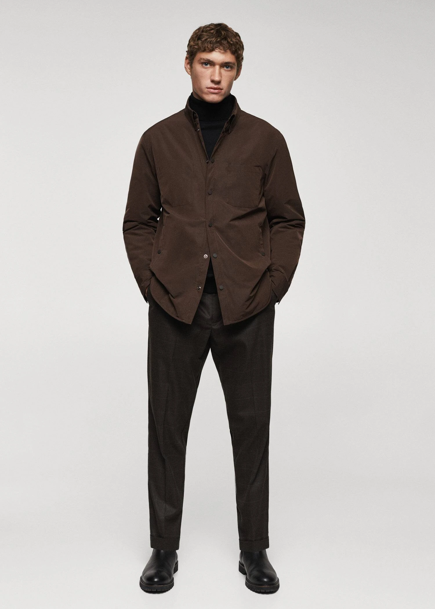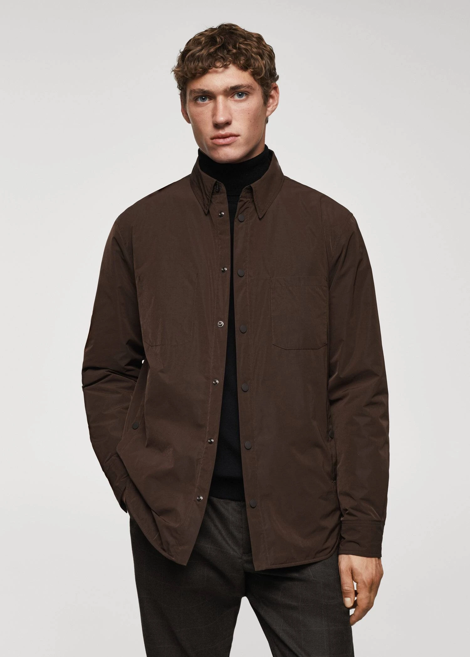 regular-fit, tissu en polyester recycle, thermoregulateur : regule la temperature du corps, hydrofuge : tissu technique resistant a l’eau, design impermeable, matelasse, col chemise, poche plaquee sur la poitrine, deux poches avant a boutons-pression, manches longues avec poignets boutonnes, bas arrondi, le mannequin mesure 190 cm et porte une taille mComposition: 85% polyester,15% polyamide. Doublure: 100% coton. Doublure manches: 55% polyester,45% viscose. Rembourrage: 100% polyester