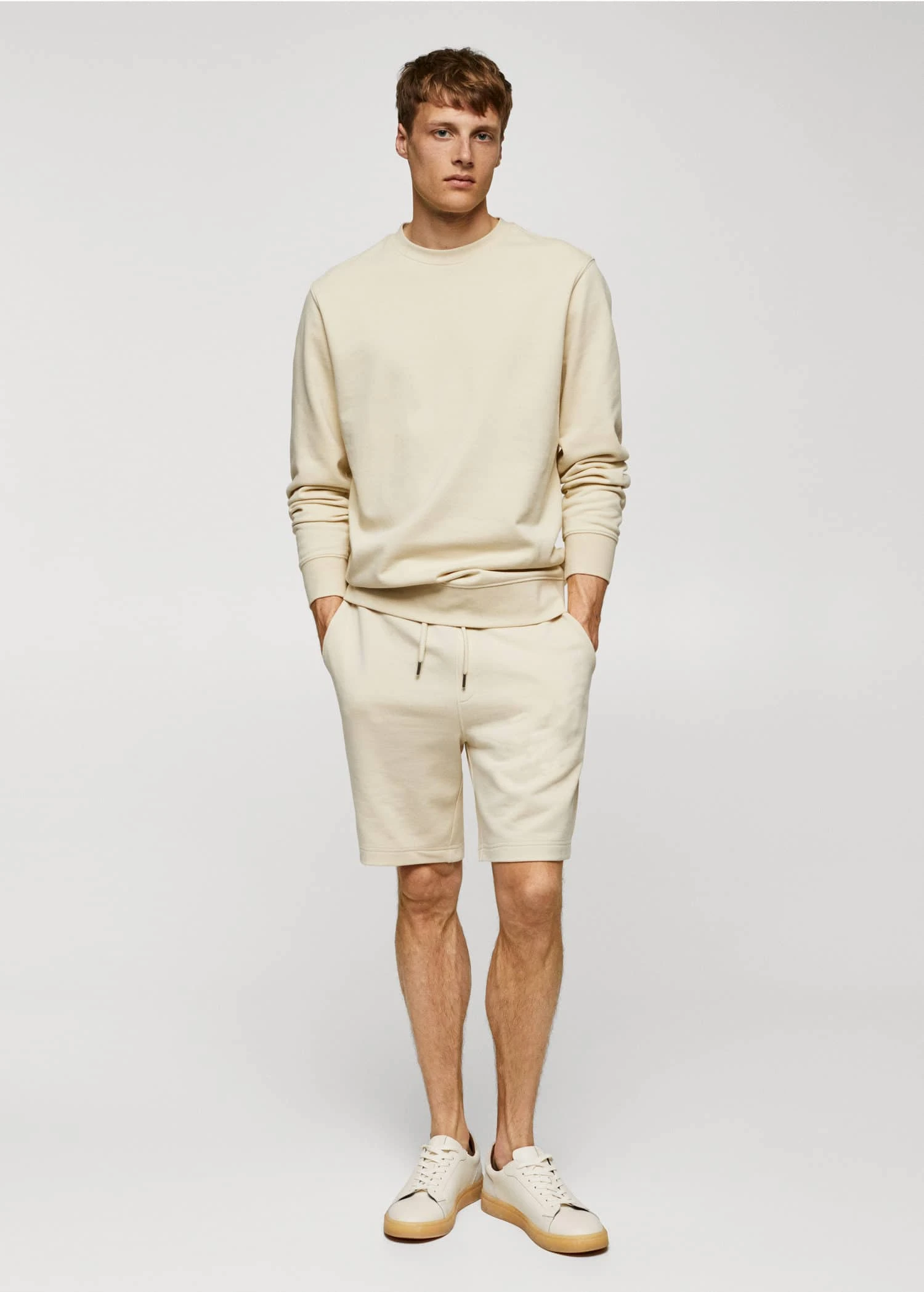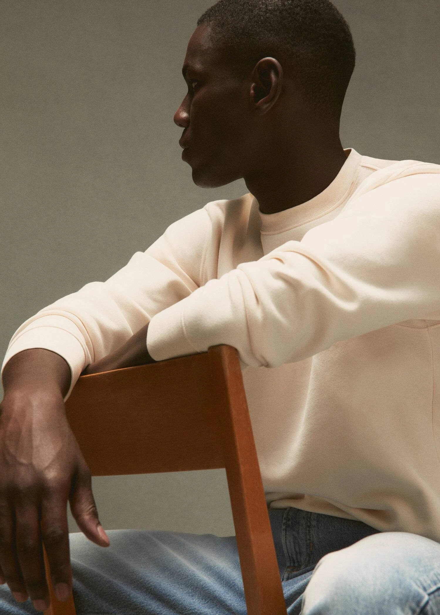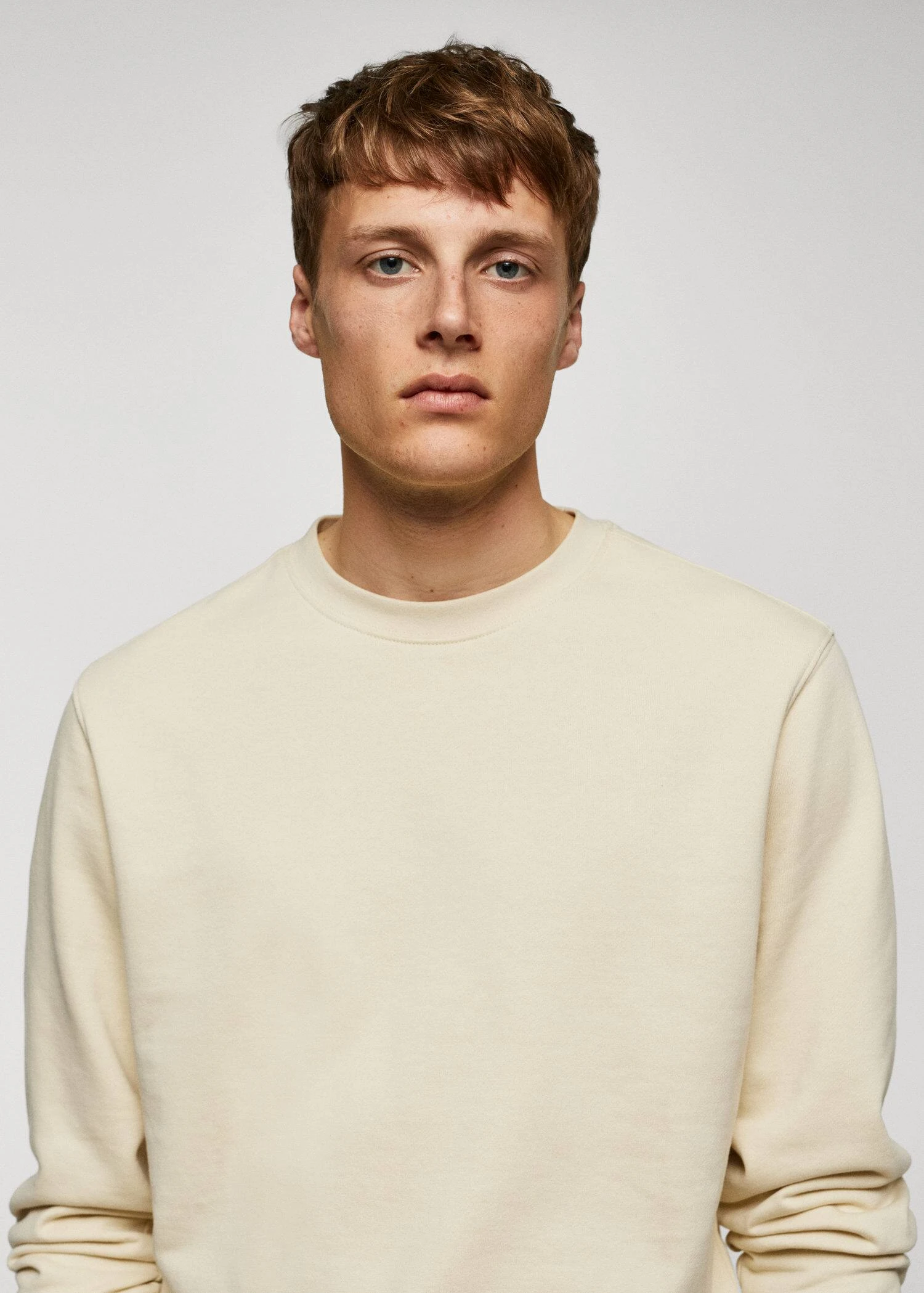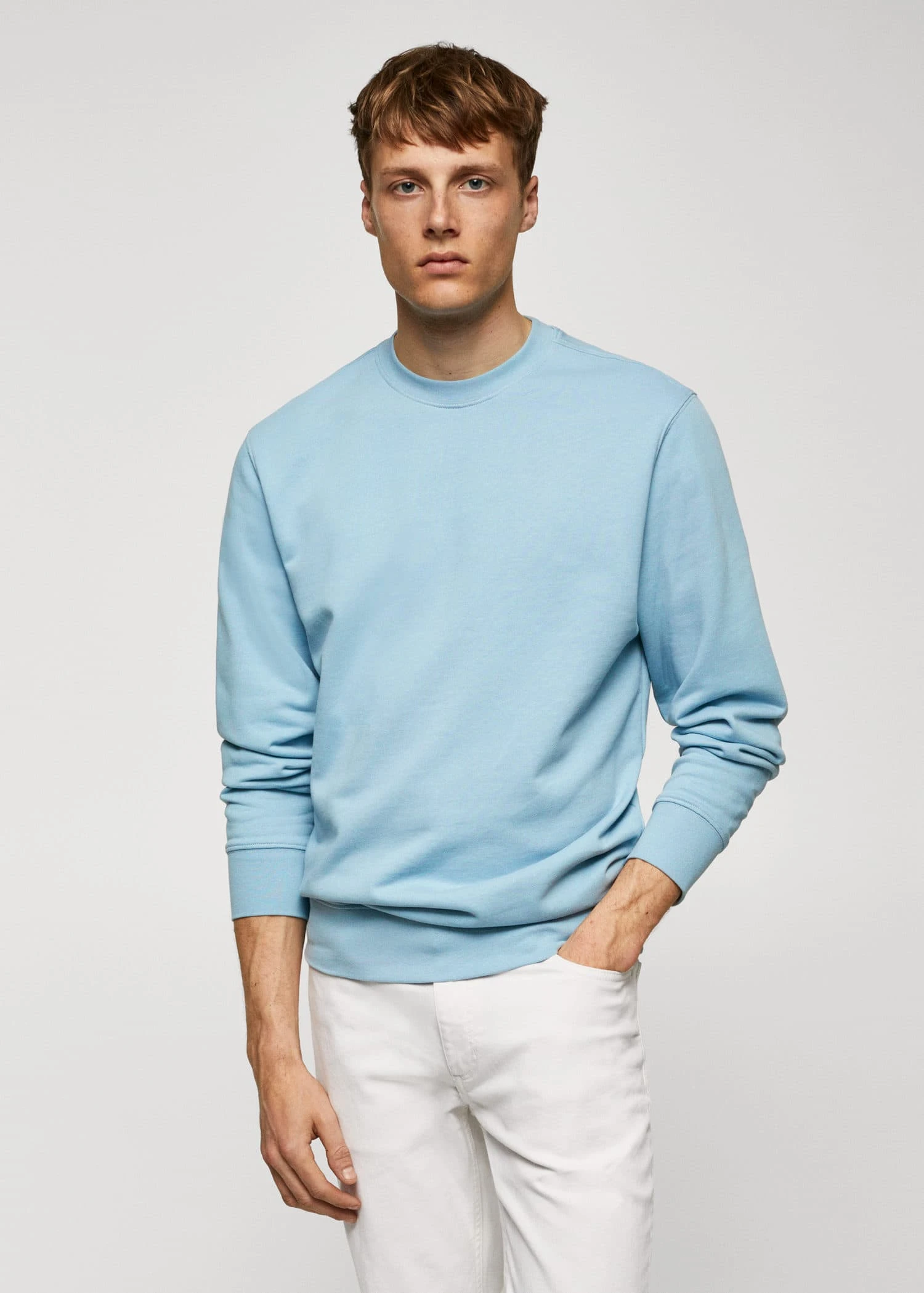 les essentiels : concus pour durer, tissu 100 % coton, tissu en coton durable, regular-fit, col rond, manches longues avec poignets elastiques, manches longues, bords coteles elastiques, bas elastique, le mannequin mesure 183 cm et porte une taille mComposition: 100% coton