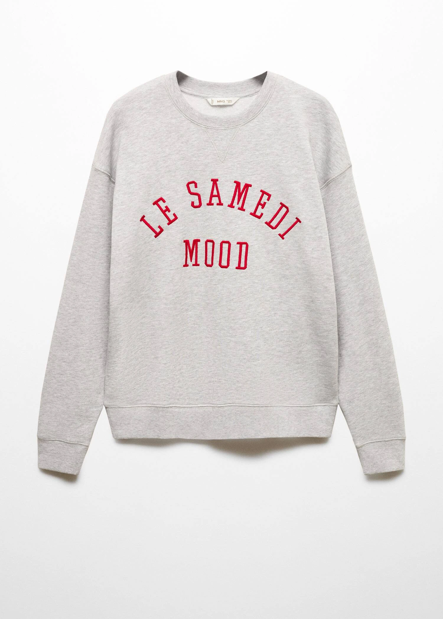 tissu en coton, message brode, coupe droite, message imprime, col rond, manches longues, sans fermetureComposition: 95% coton,5% viscose