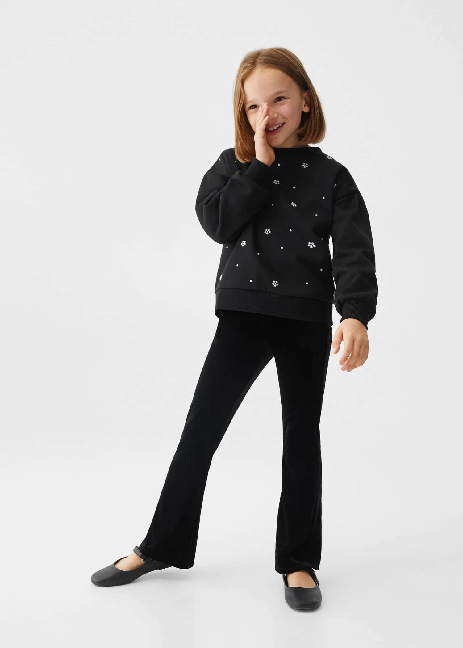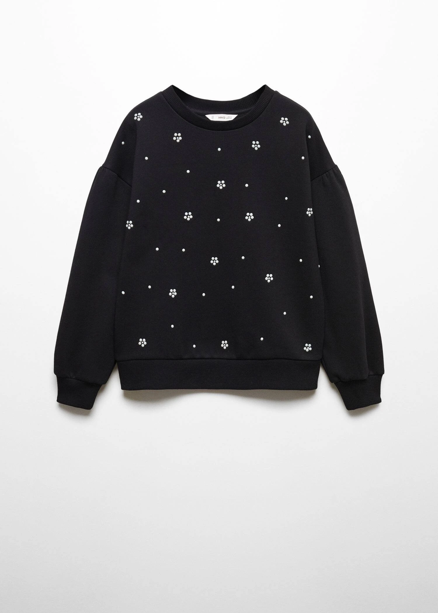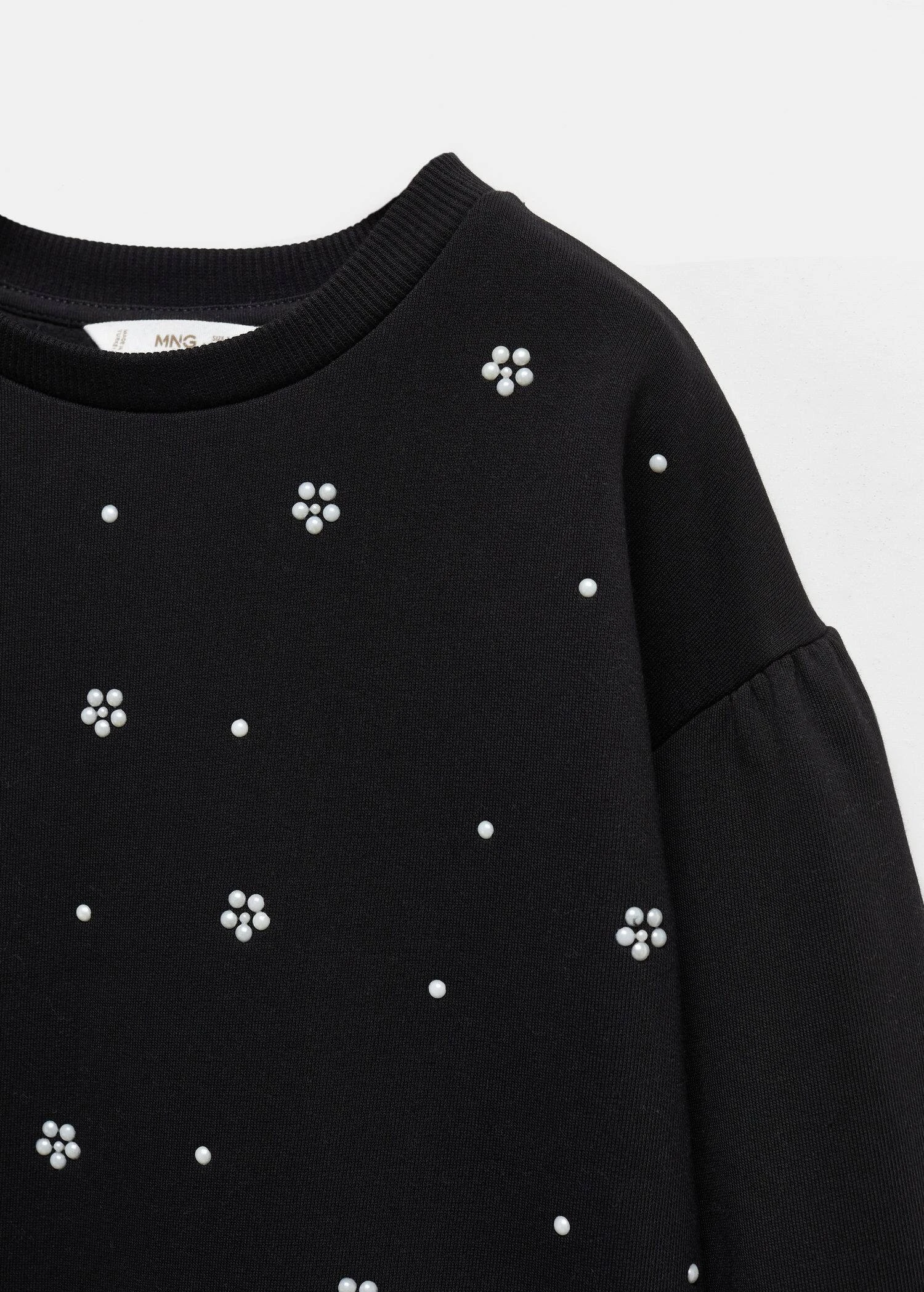 tissu en coton, coupe droite, perles en forme de fleurs, col rond, manches longues, sans fermeture.Composition: 85% coton,15% polyester