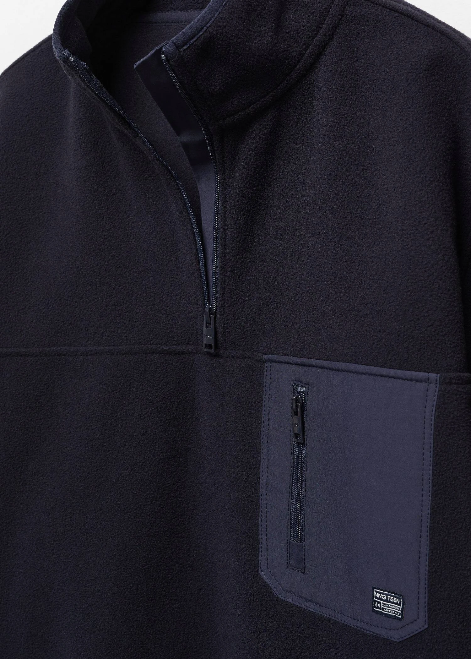 tissu polaire, coupe droite, col montant, manches longues, poche zippee sur la poitrine, fermeture eclair au col, fermeture frontale.Composition: 100% polyester. Poche: 59% coton,41% polyamide