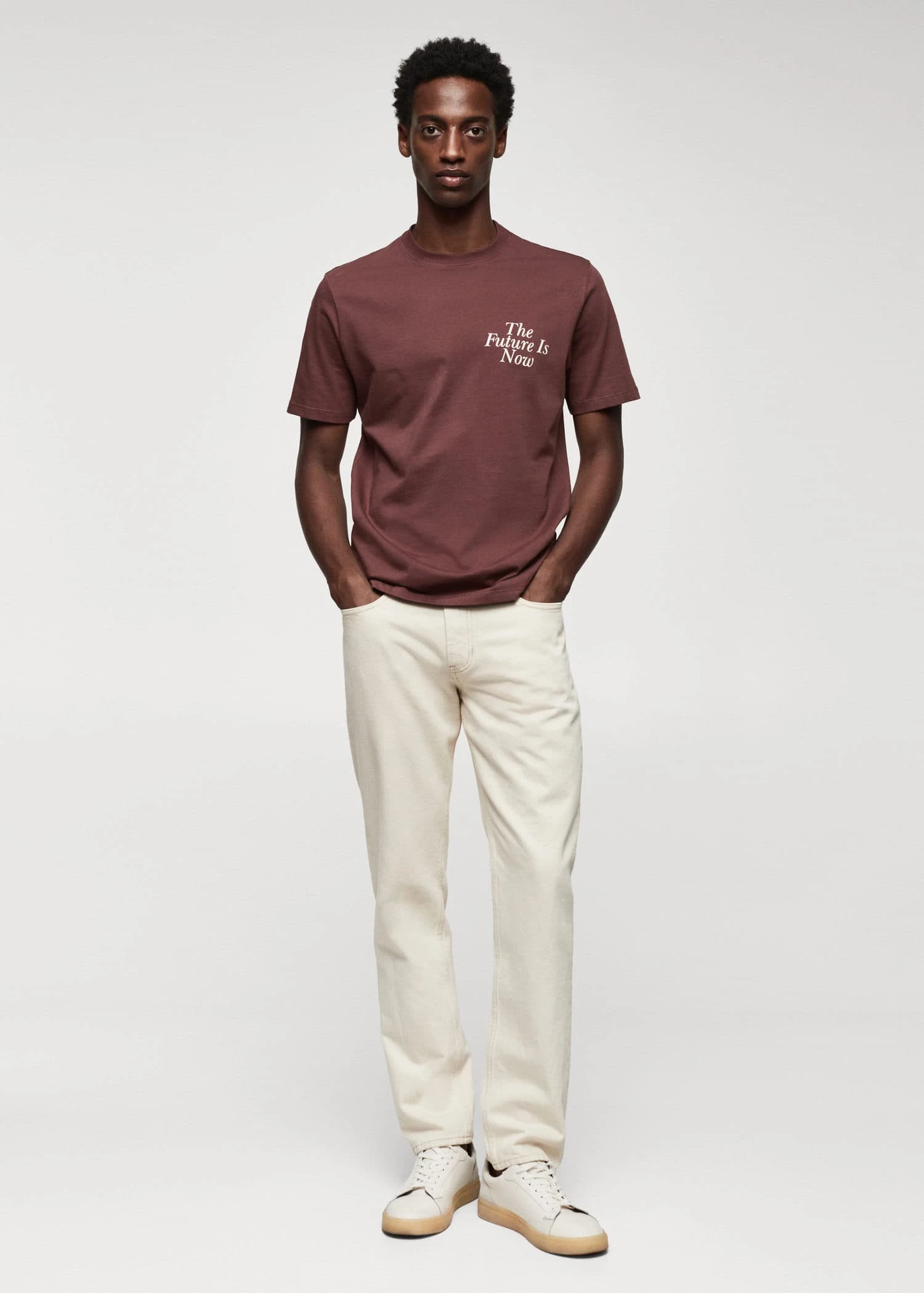 100 % coton, slim-fit, texte imprime sur la poitrine, manches courtes, bas droit, le mannequin mesure 190 cm et porte une taille mComposition: 100% coton. Cannelé: 98% coton,2% elasthanne
