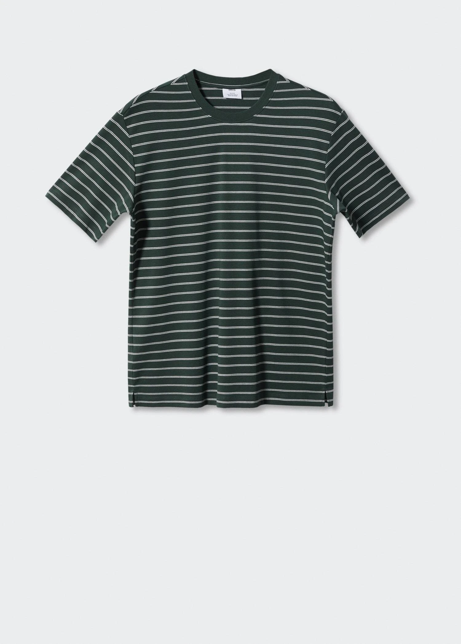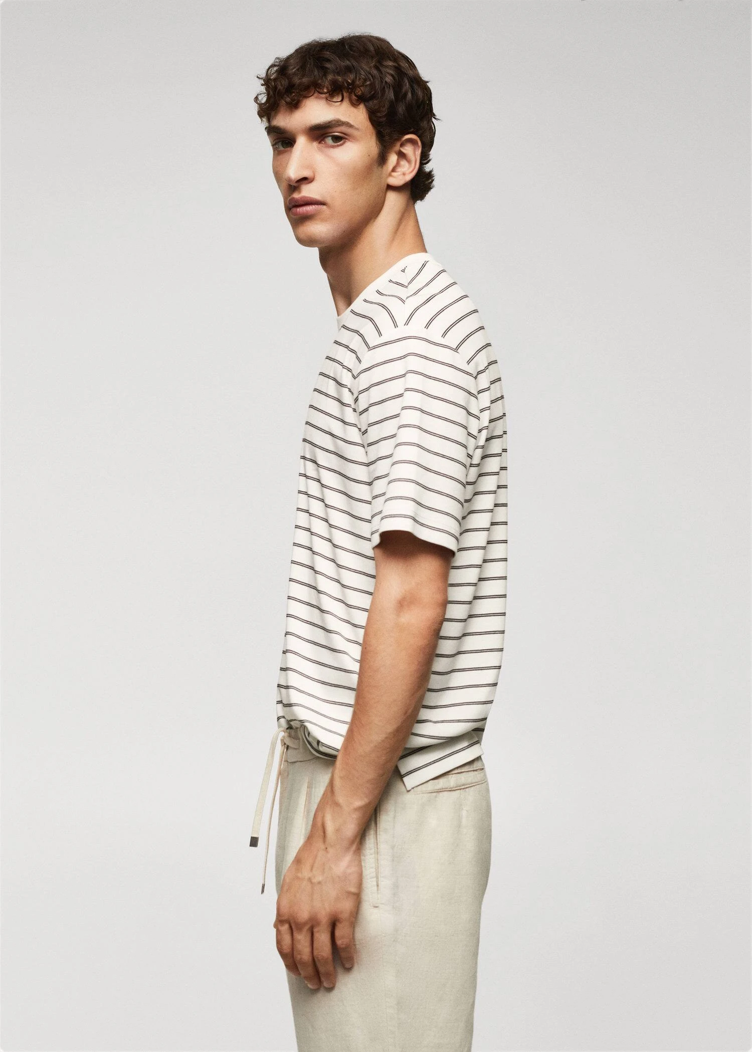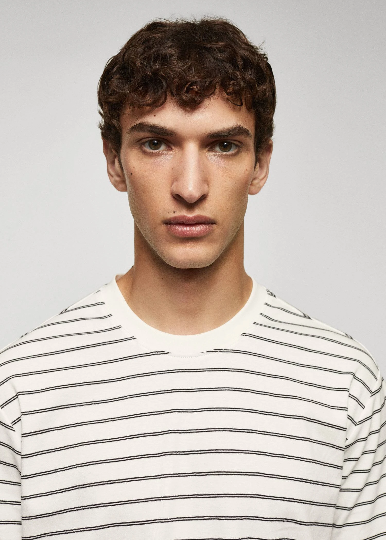 tissu 100 % coton, regular-fit, imprime a rayures horizontales, manches courtes, bas droit fendu sur les cotes., le mannequin mesure 190 cm et porte une taille mComposition: 100% coton