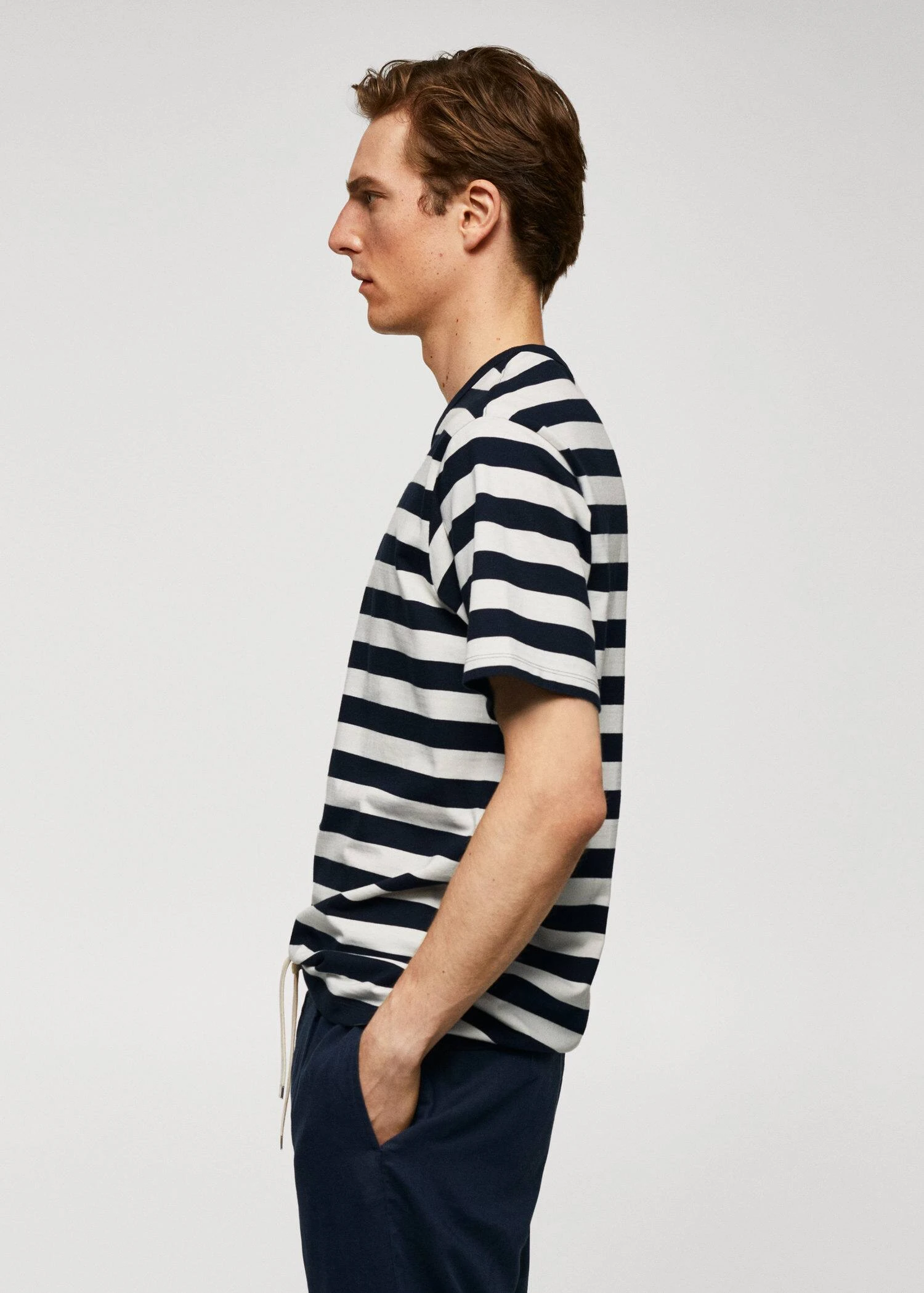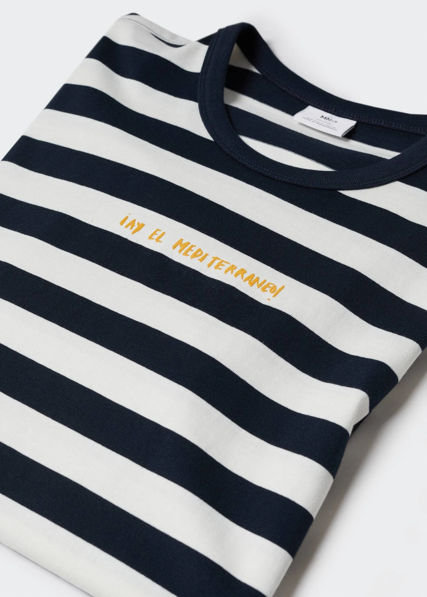 tissu 100 % coton, regular-fit, imprime a rayures horizontales, message imprime en relief sur la poitrine, manches courtes, bas droit, le mannequin mesure 190 cm et porte une taille m, en collaboration avec la photographe et artiste visuelle adriana eskenaziComposition: 100% coton. Cannelé: 95% coton,5% elasthanne