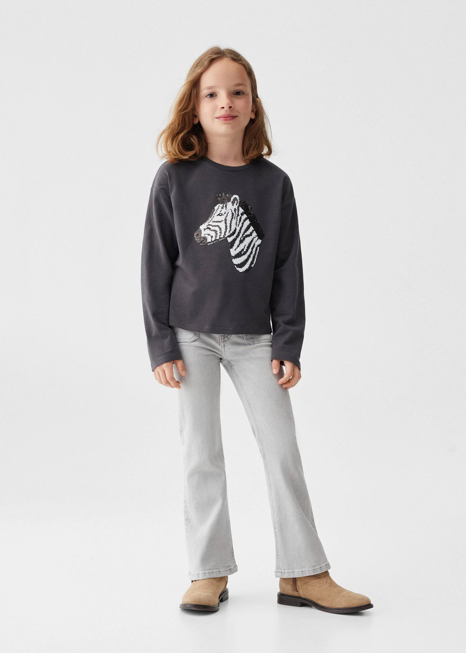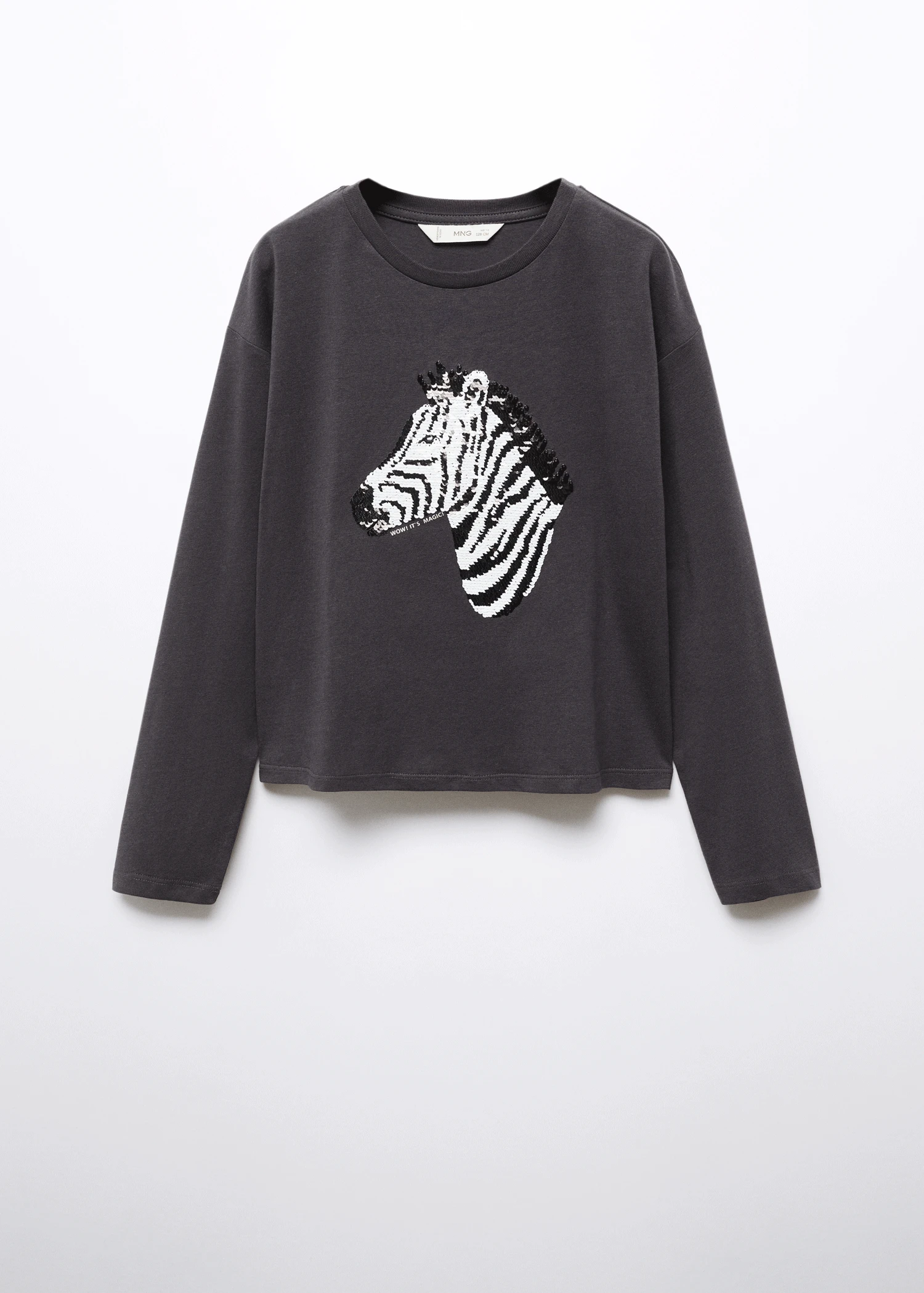 100 % coton, imprime de zebre, sequins reversibles, col rond, manches longuesComposition: 100% coton