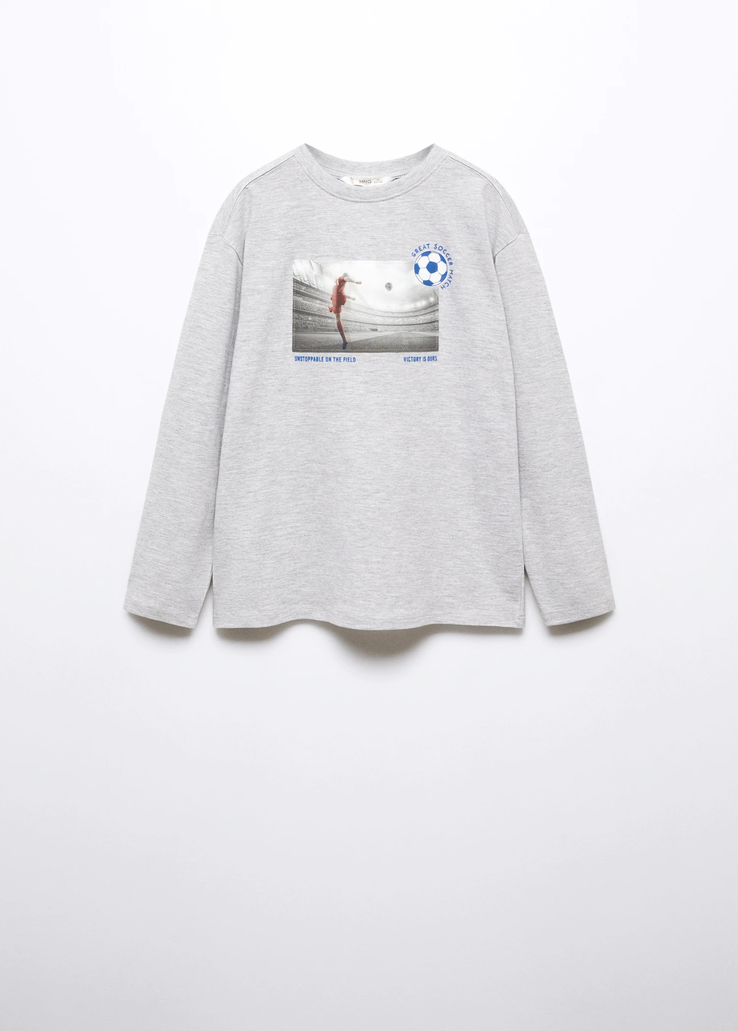 tissu en coton, coupe droite, image imprimee sur le devant, col rond, manches longues, sans fermetureComposition: 95% coton,5% viscose